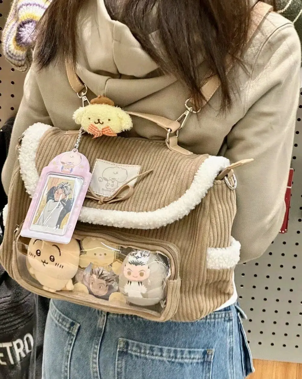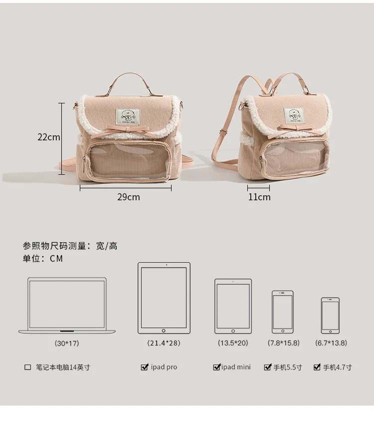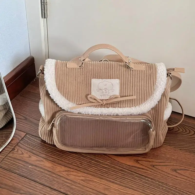JIAERDI Autumn Winter Corduroy Ita Bag For Women Cute Messenger Bag Female Aesthetic Handheld Multi Functional Backpack Lady