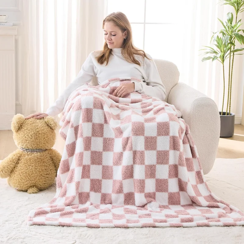 The trendy checkered design brings a cute, modern aesthetic to bedrooms, dorms, and living rooms, while the breathable fabric makes it suitable for year-round use. Soft, portable, and easy to fold, it’s great for movie nights, naps, travel, or a stylish layered décor accent.
