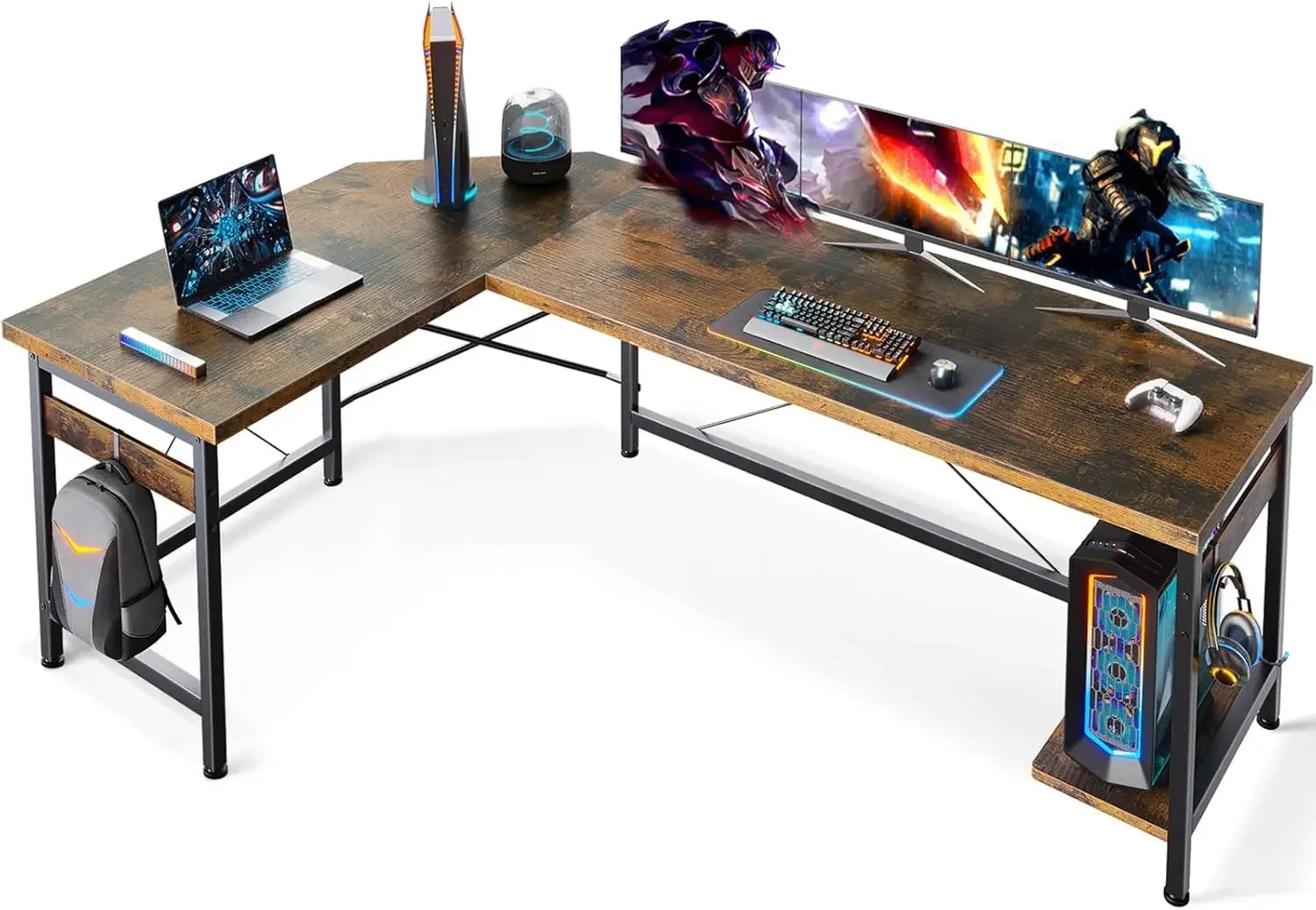 - Maximized Workspace: The L-shaped design fits seamlessly into corners, transforming them into productive areas for work or gaming.