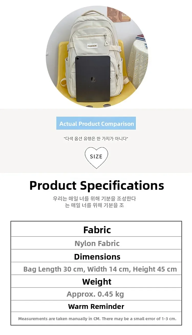 With its Korean-style design, this backpack adds a touch of fashion to your everyday look.