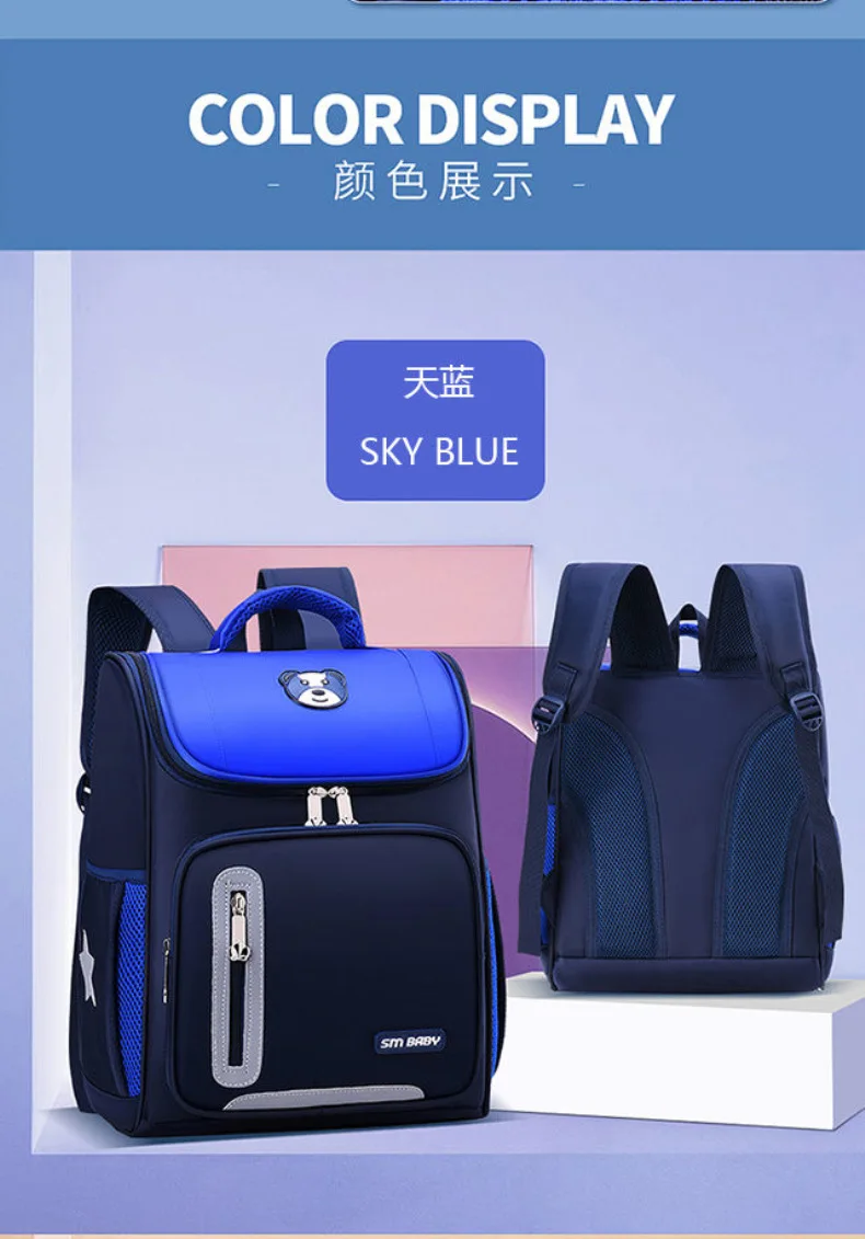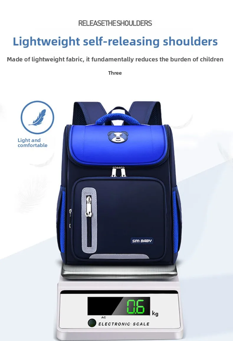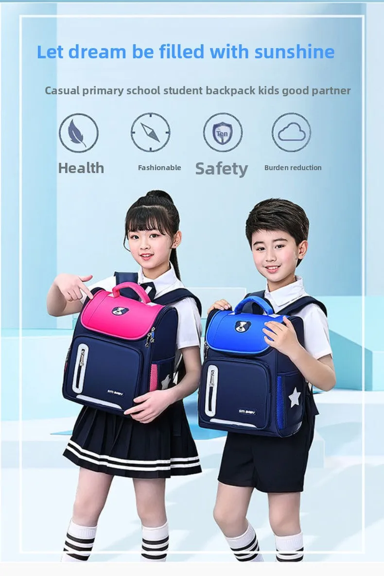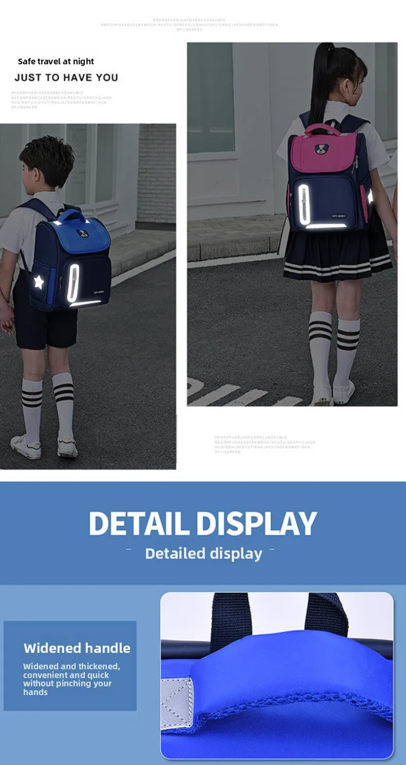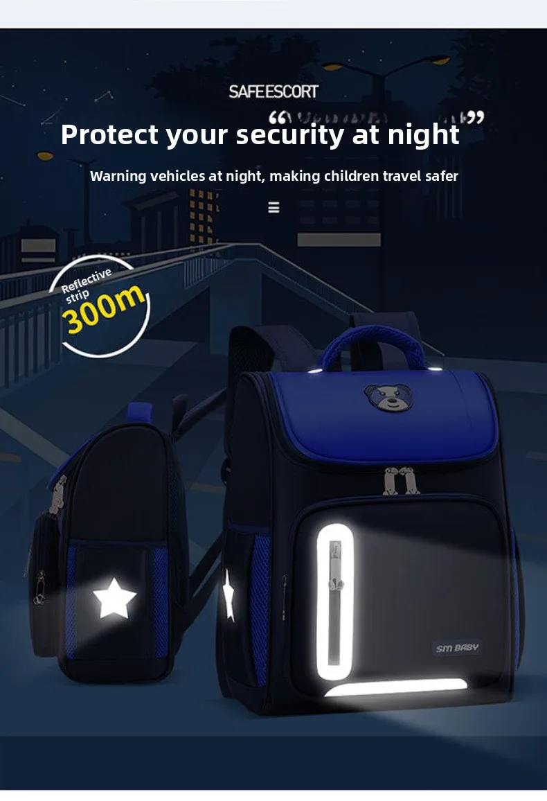 Lightweight Kids Backpack 1 3 6 Grade Spine Protection Reflective Space School Bag for Elementary Students
