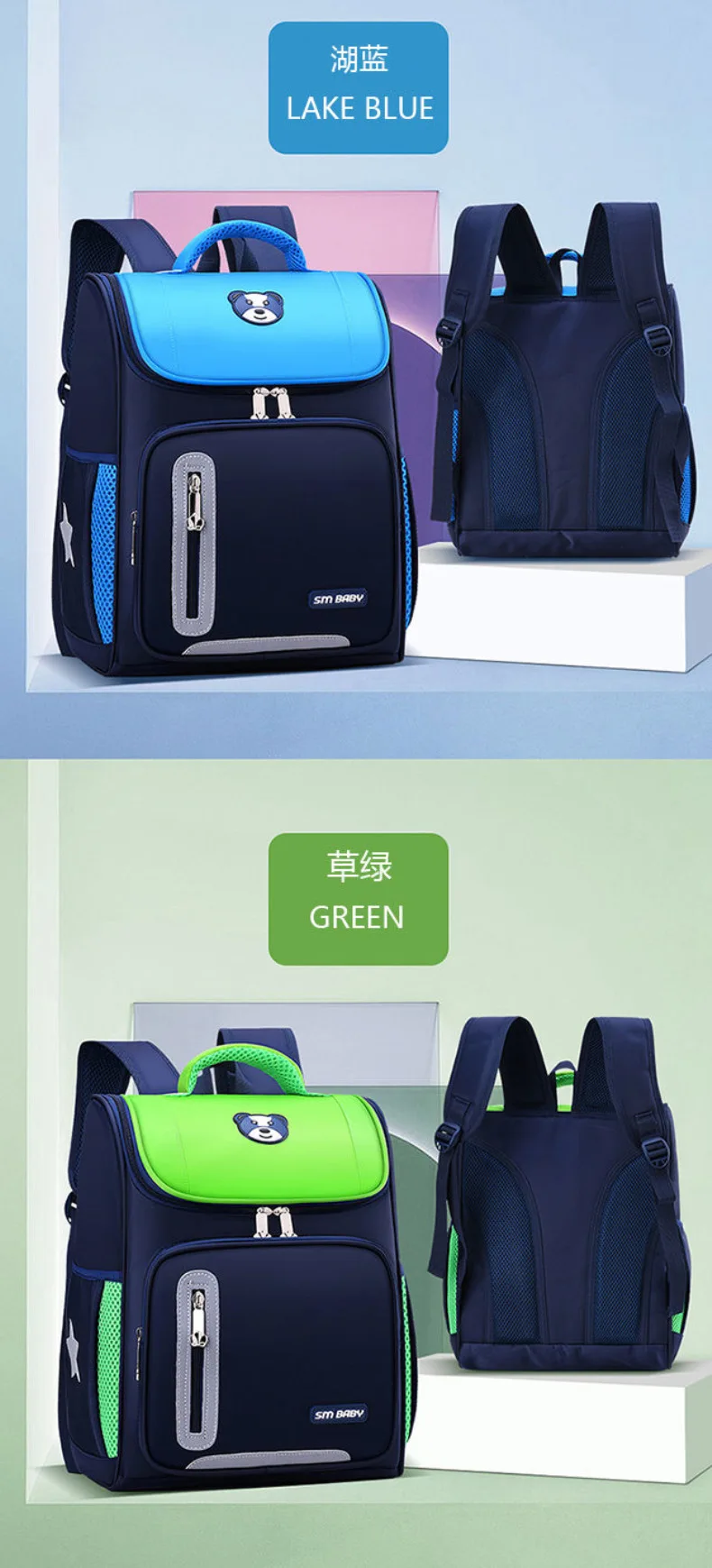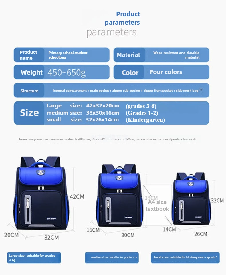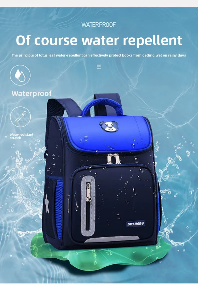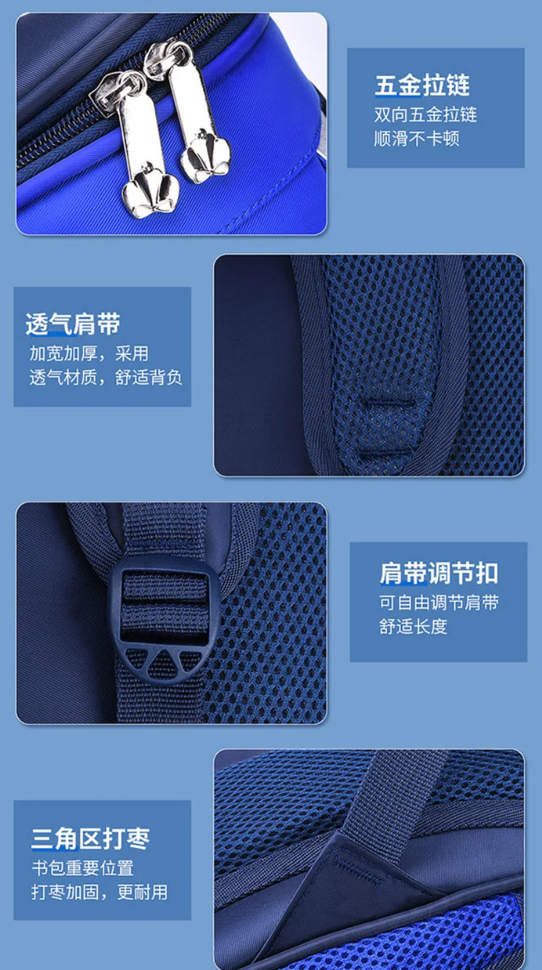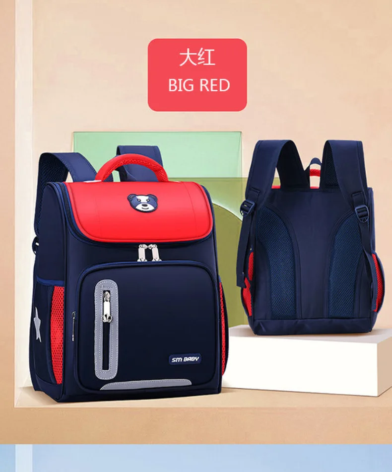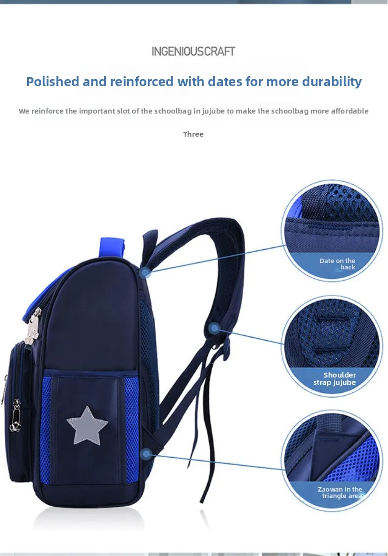 Lightweight Kids Backpack 1 3 6 Grade Spine Protection Reflective Space School Bag for Elementary Students