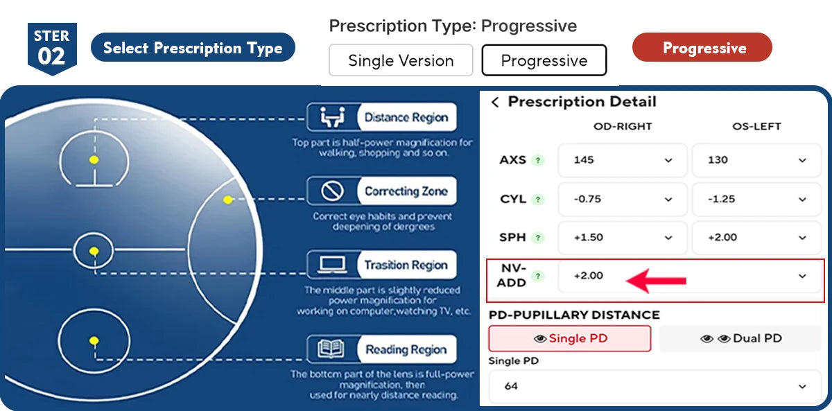- Prescription Type: Choose between single vision and progressive lenses to suit your vision needs.