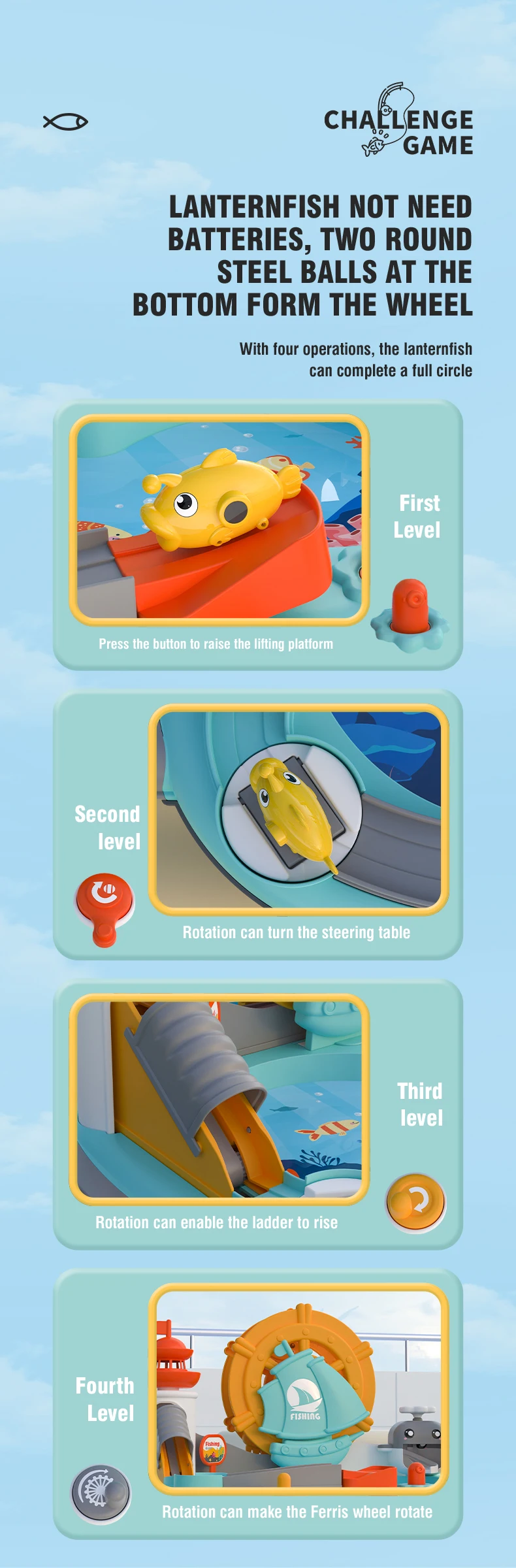 2. The cute and interesting little fish has two round steel balls at the bottom to form wheels