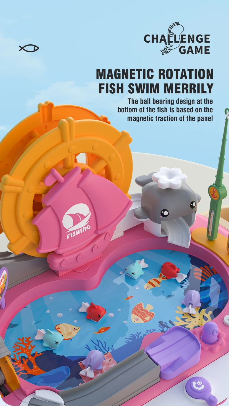 Magnetic Electric Fishing Toy Multifunctional Fishing Game Kids Edcational Toys with Slideway Music Story Kids Xmas Newyear Gift