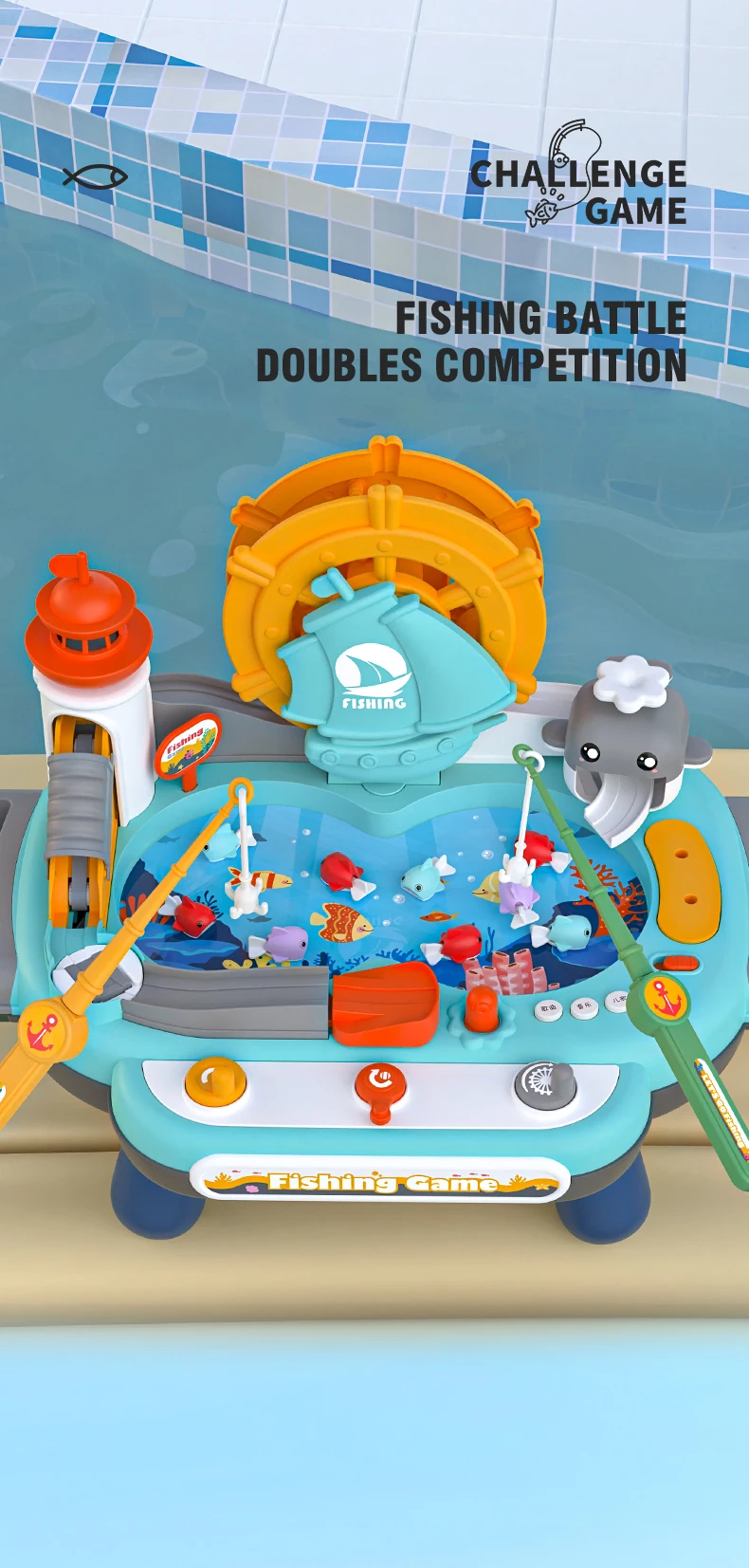 3. Fishing battle, two-person competition, with fishing rods placed in fixed positions