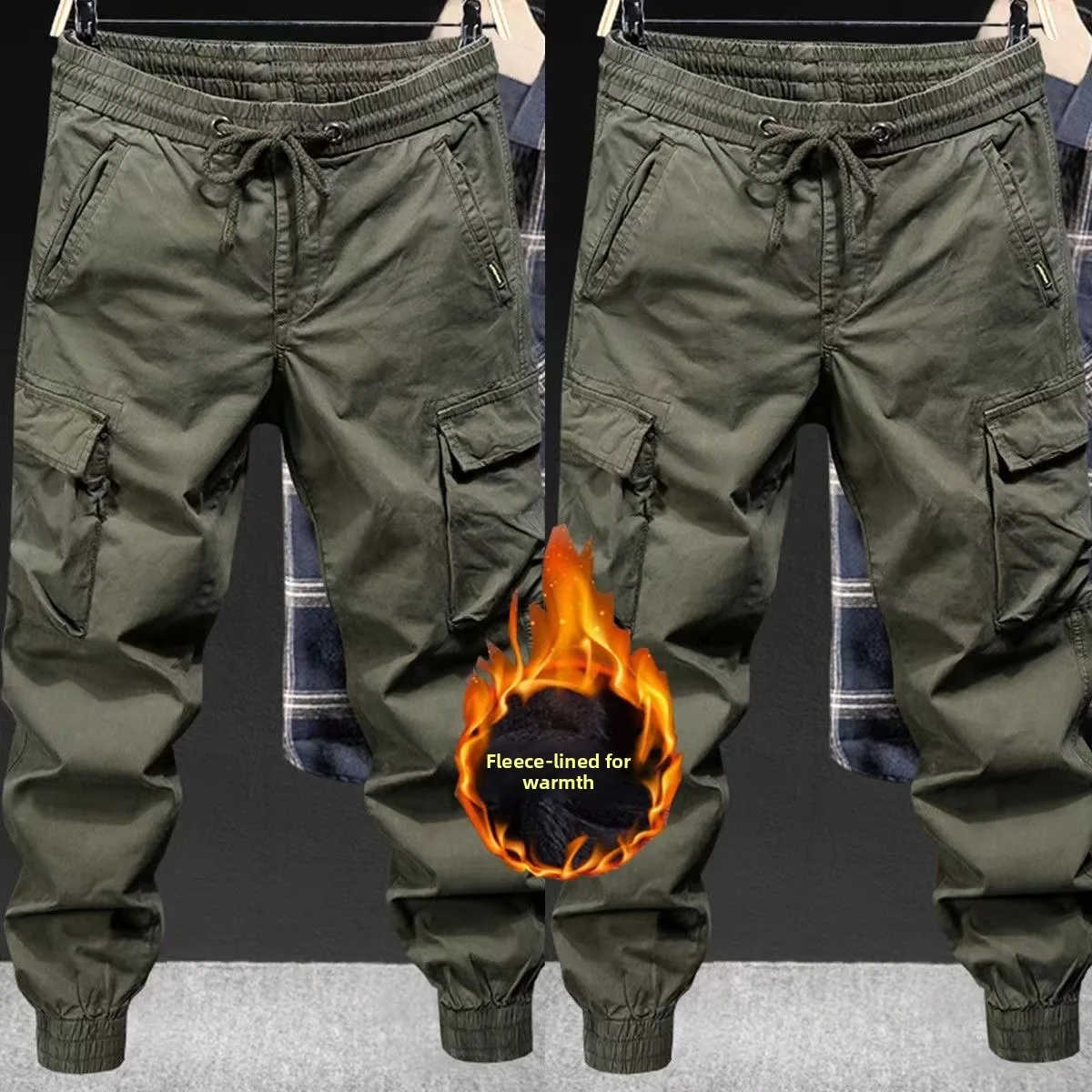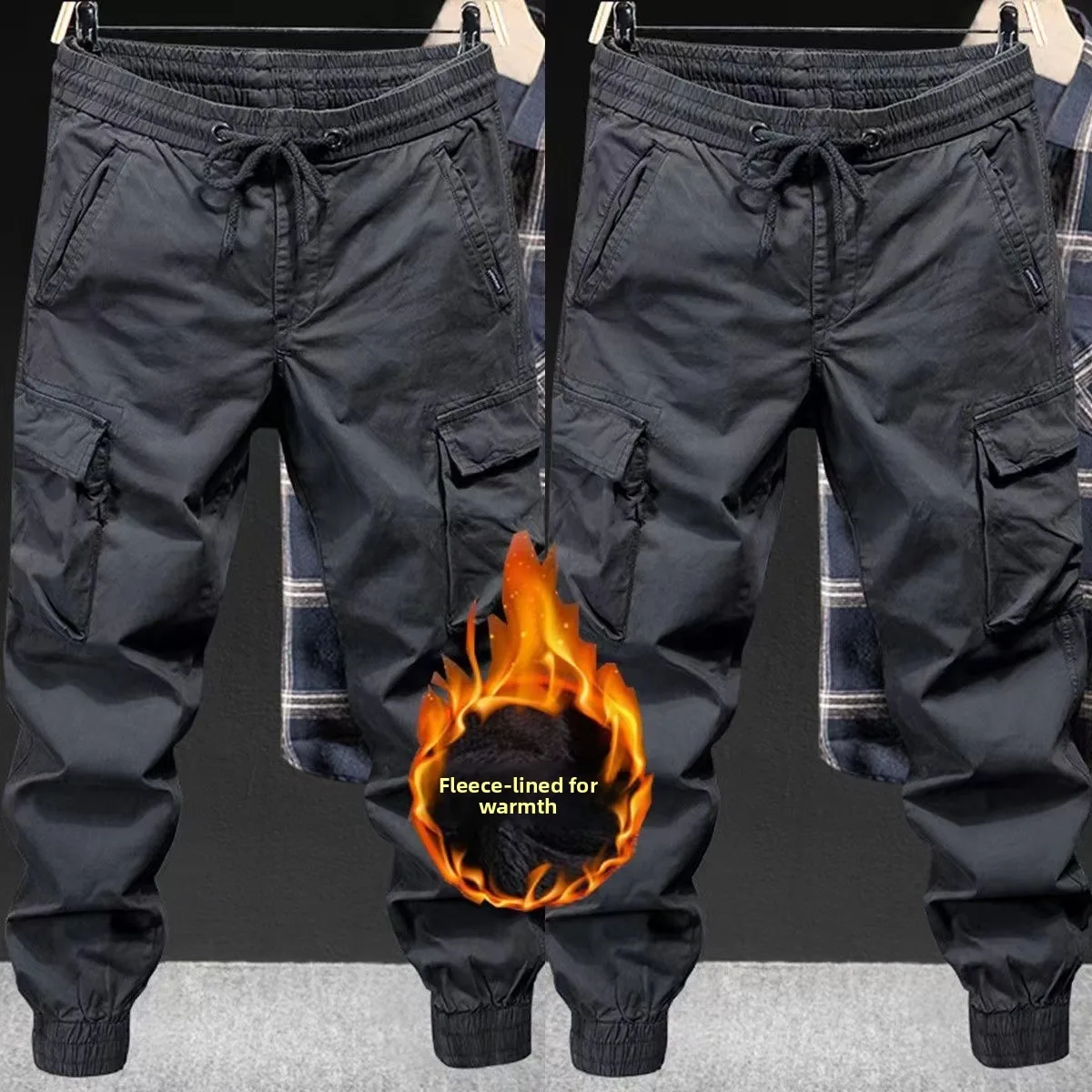 Men’s autumn winter thickened fleece work cargo pants designed for warmth, durability, and daily outdoor or work use. The interior fleece lining provides added insulation for cold weather, while the wear-resistant and tear-proof outer fabric enhances strength for active or labor environments.