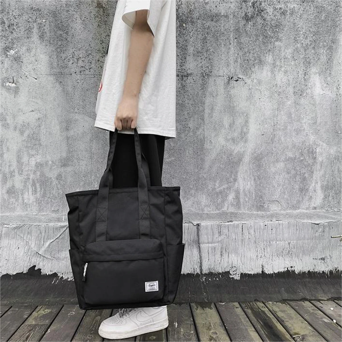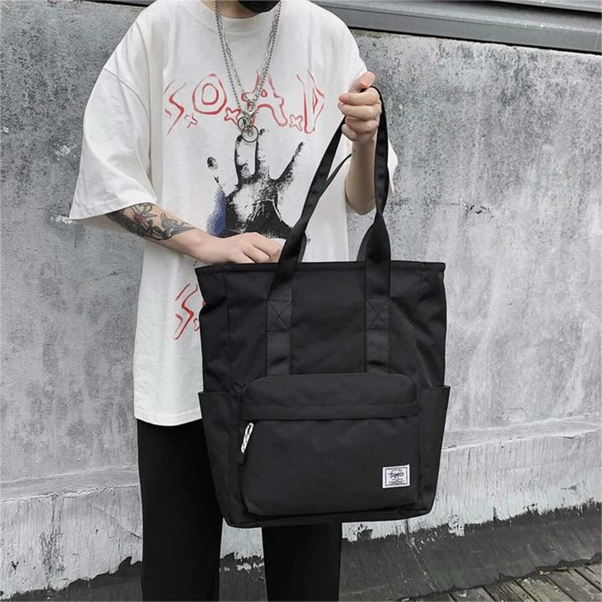 This is a large-capacity shoulder bag made from durable polyester, designed for everyday use and versatile styling.