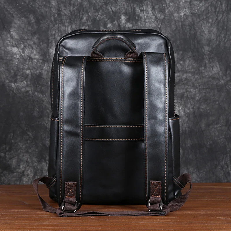 Men's Leather Double Shoulder Baothead Layer Cowhide Backpack Large Capacity Travel Bag Leisure School Bag Simple Computer Bag