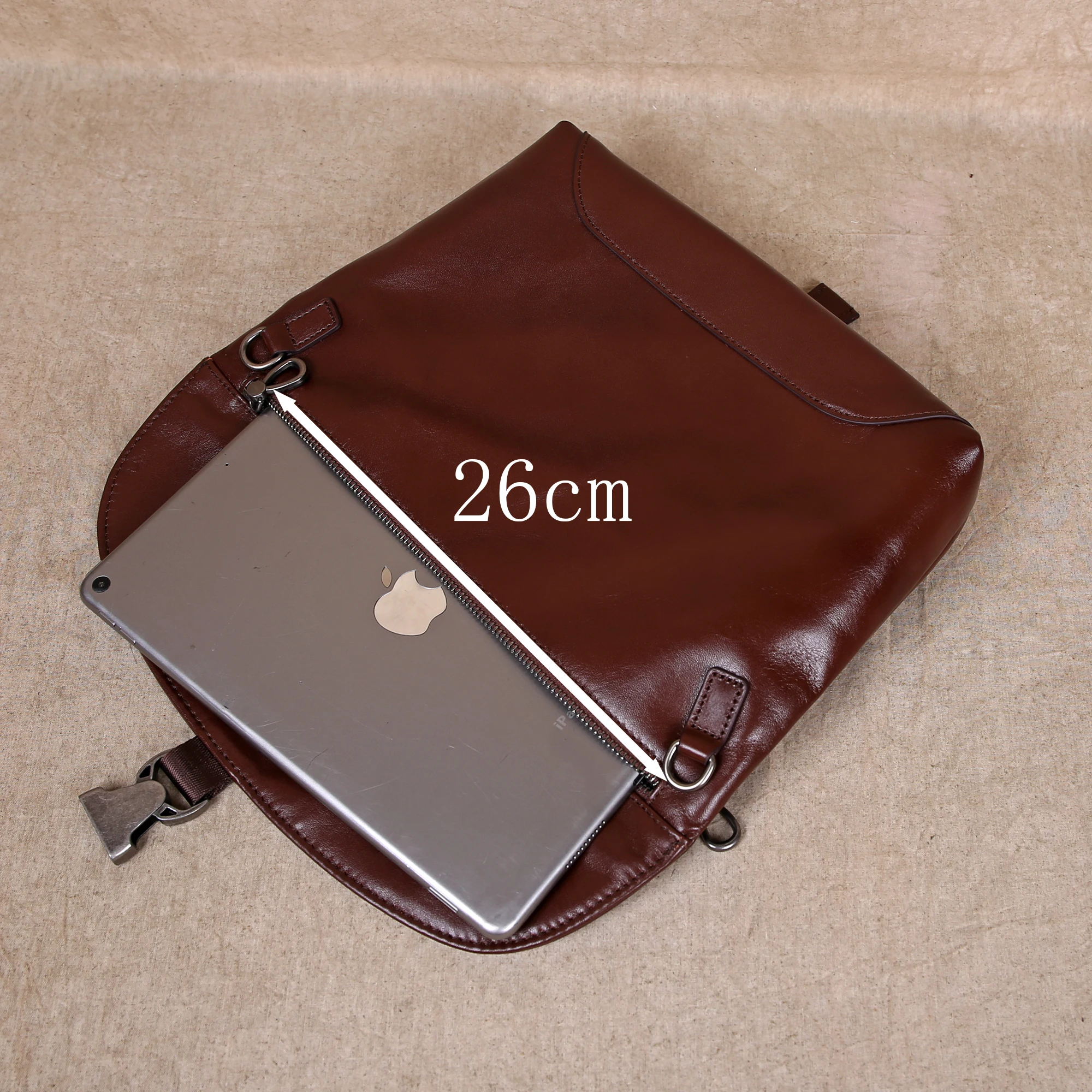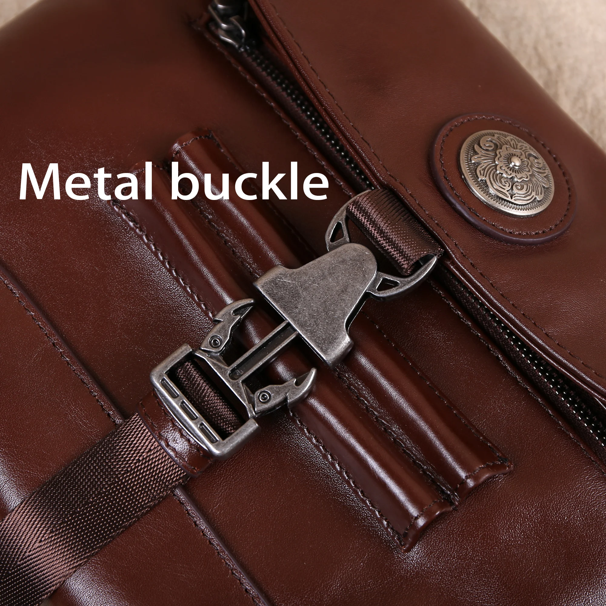 The bag is crafted from genuine cowhide leather, ensuring durability and softness.