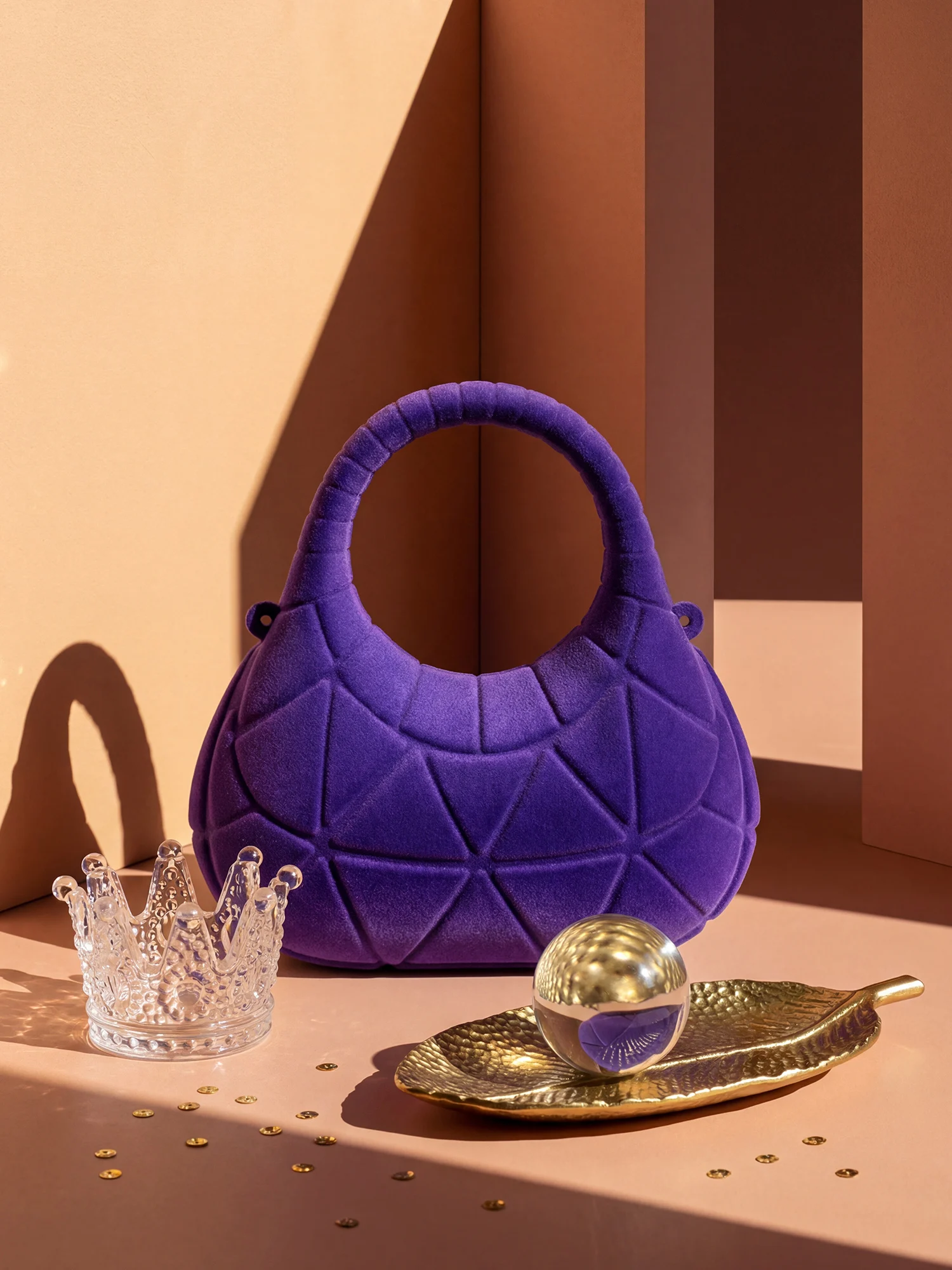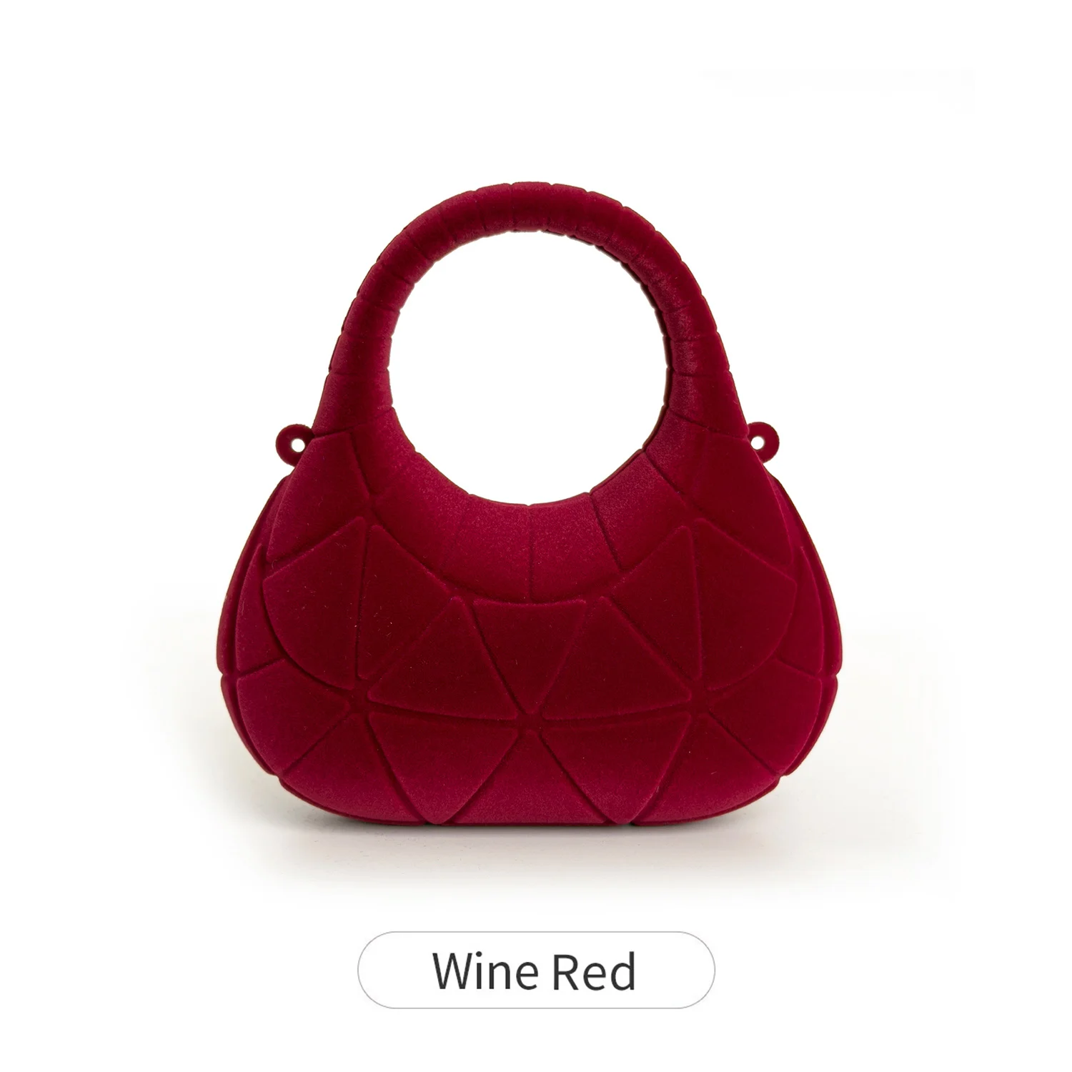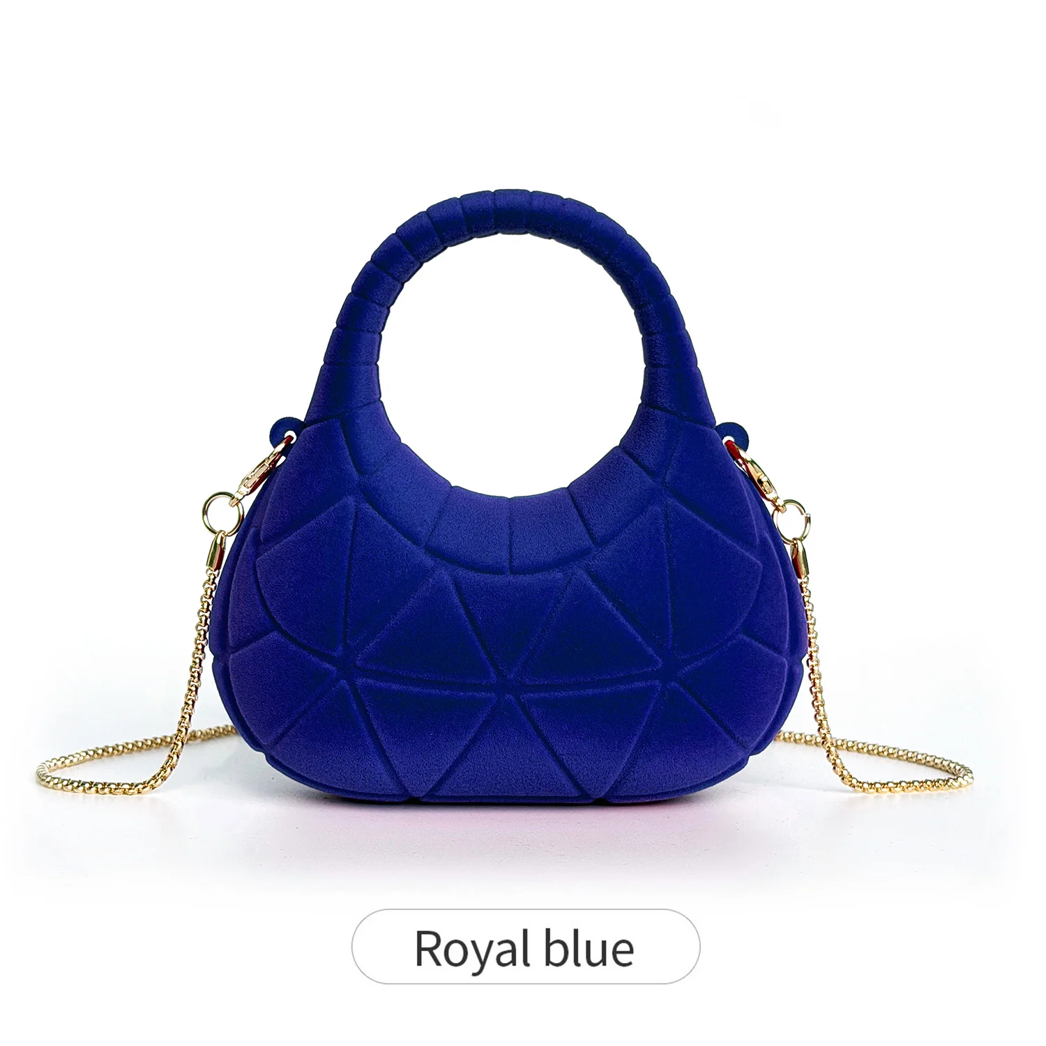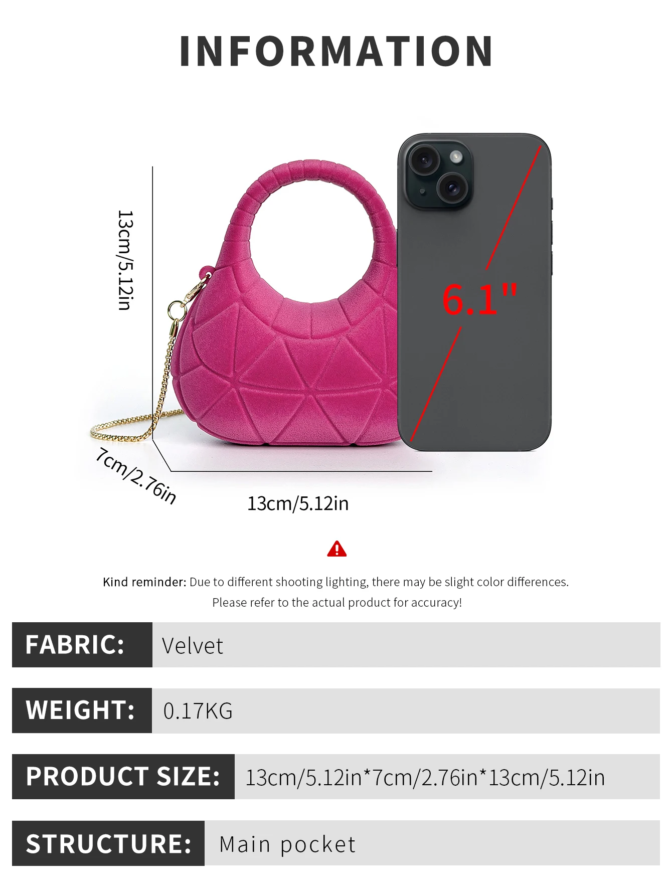 This is a mini velvet chain evening bag that adds a luxurious touch to any outfit, perfect for special occasions like weddings and parties.