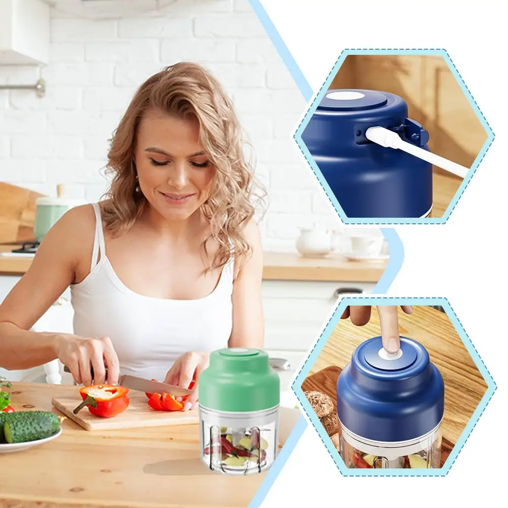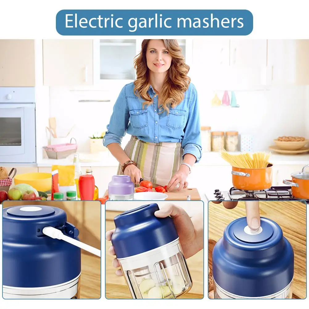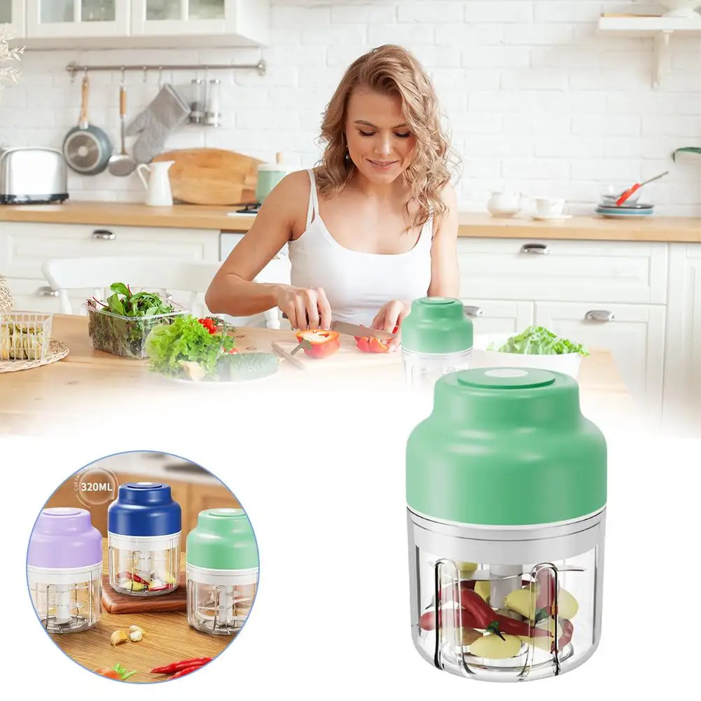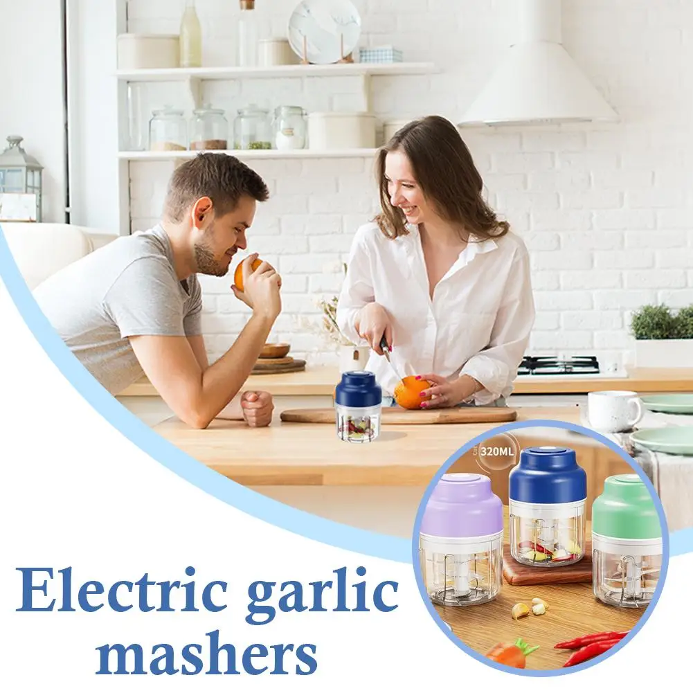 Mini Wireless Electric Garlic Crusher Portable 320ml Chopper USB Charging Ginger Chili Vegetable Masher Kitchen Machine