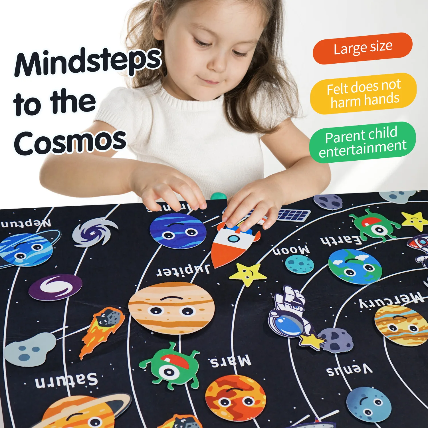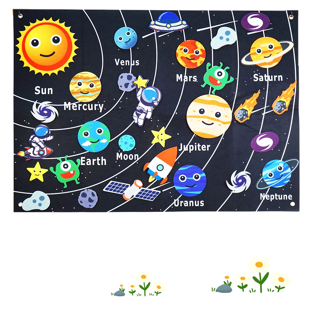Montessori Space Educational Toy - Solar System Felt Board with Hanging Planets for Storytelling & STEM Learning