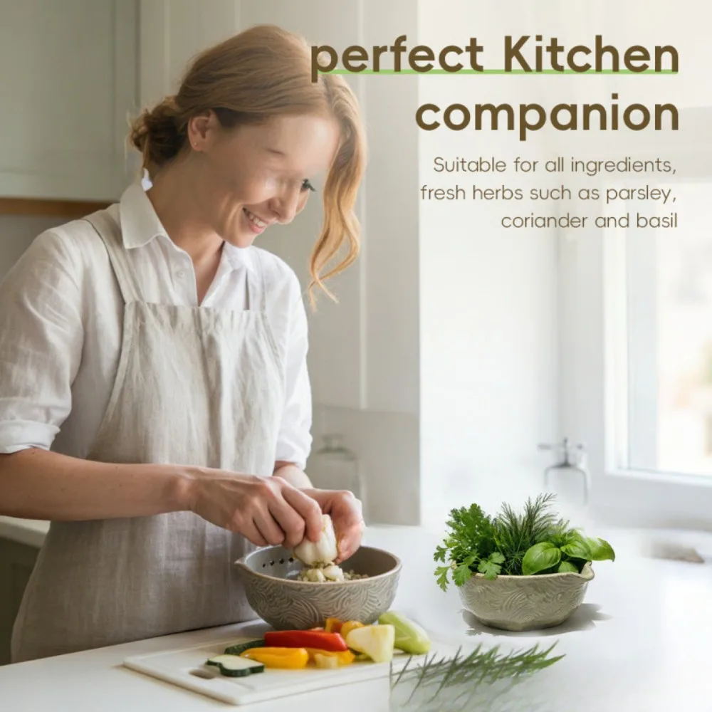 1,2-In-1 Multi-Functional Design: The handmade garlic grater x herb bowl lets you effortlessly grate garlic, prep fresh herbs (parsley, cilantro, basil), and more in one tool - ideal for sauces, marinades, and dressings, eliminating counter clutter while boosting cooking efficiency.