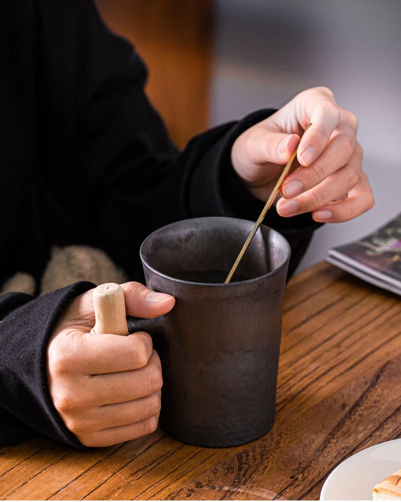 Nordic Creative Gilded Coffee Cup | Elegant Wooden Handle Mug