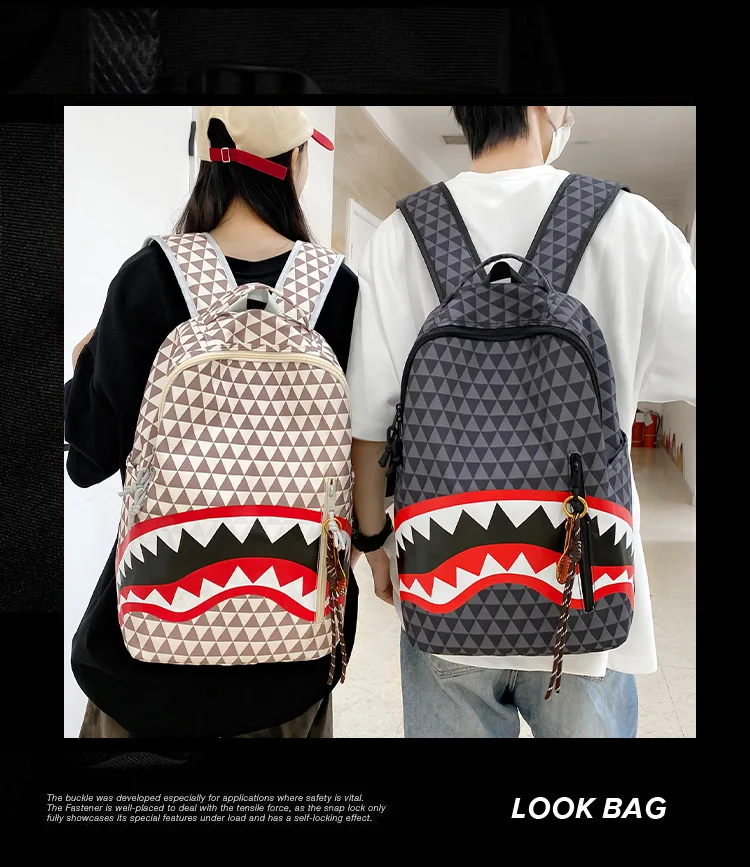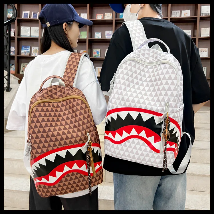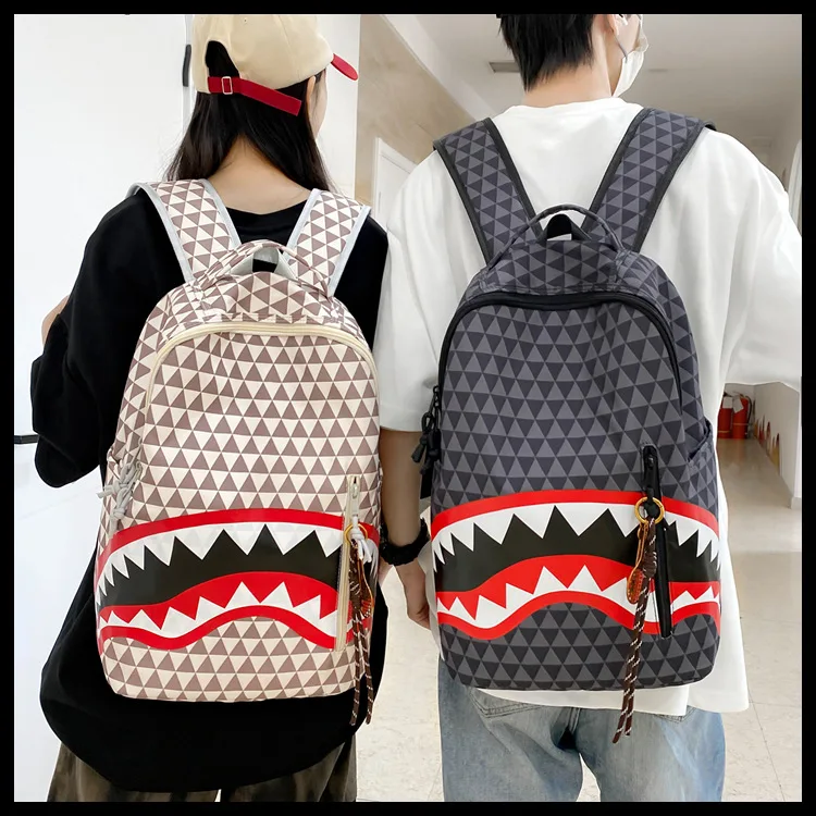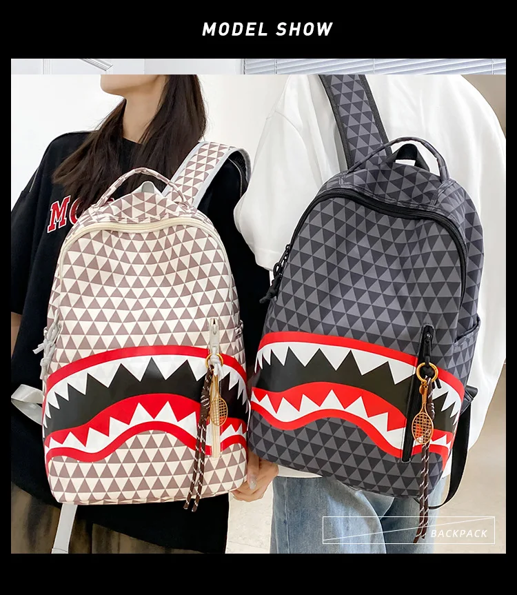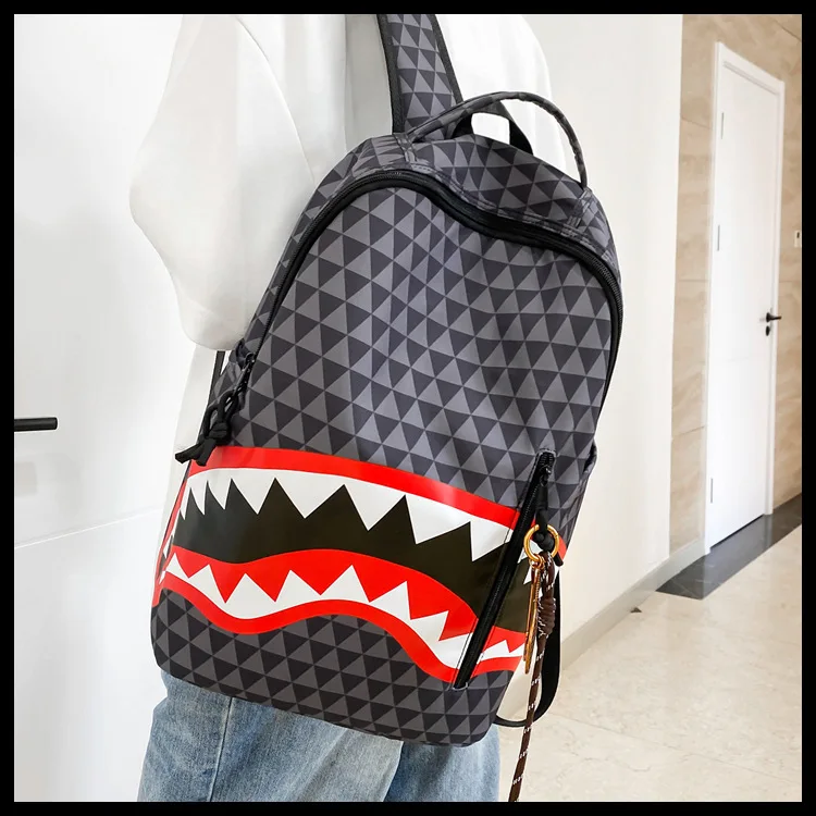 Personalized creative backpack shark funny ugly cute backpacking travel large capacity luminous student bag