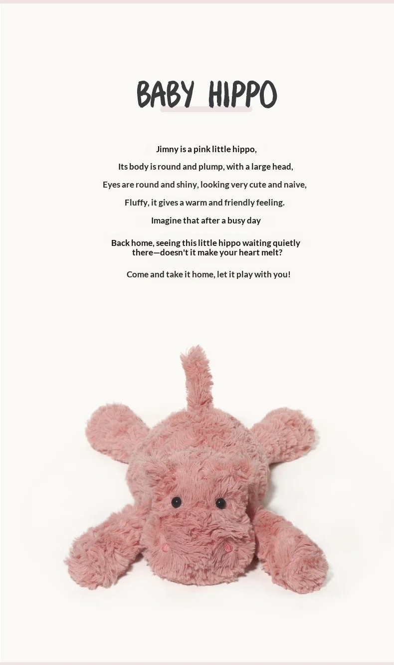 This plush hippo doll is suitable for birthdays, holidays, and special occasions, offering a balance of softness, durability, and classic animal design.