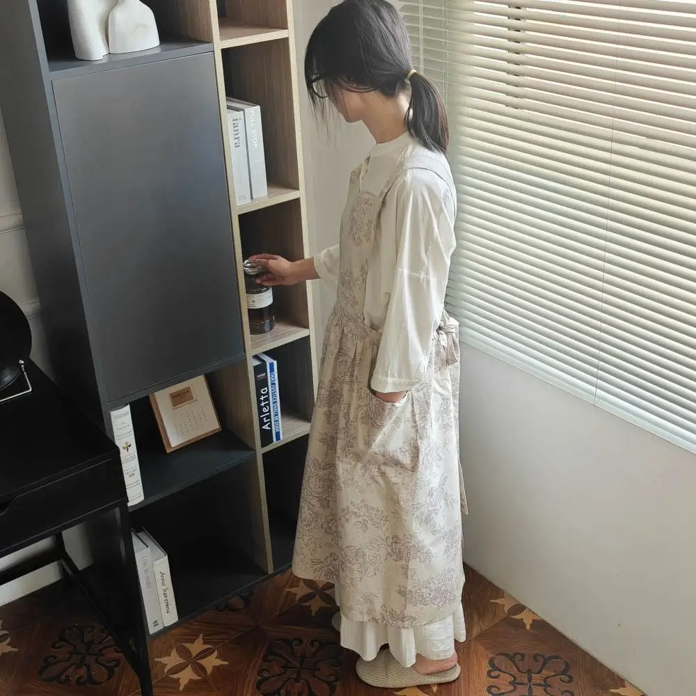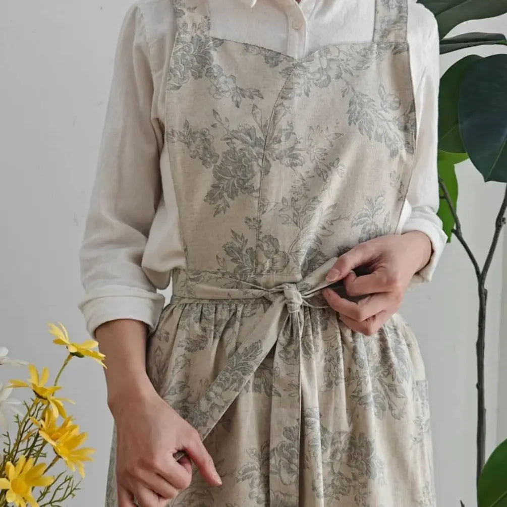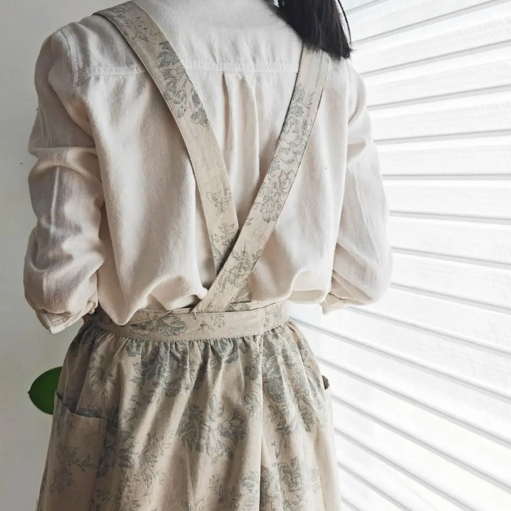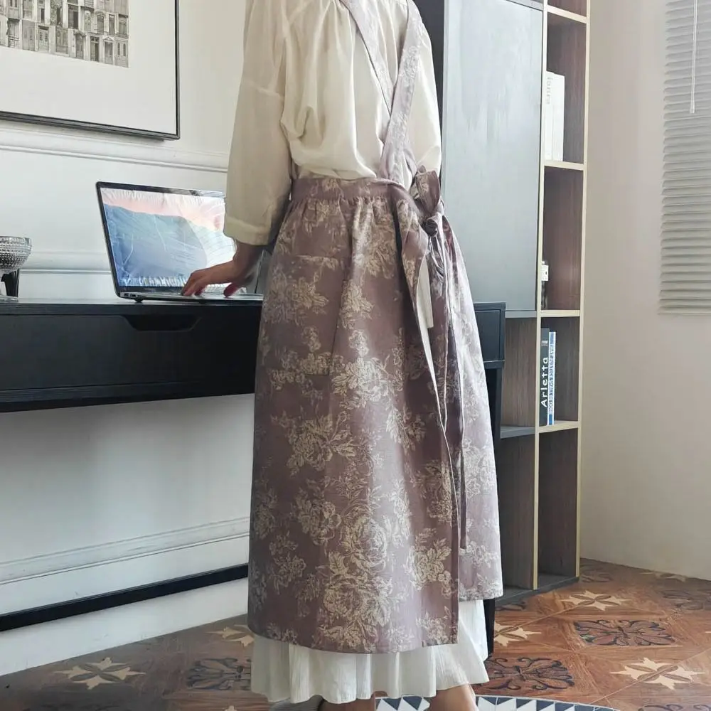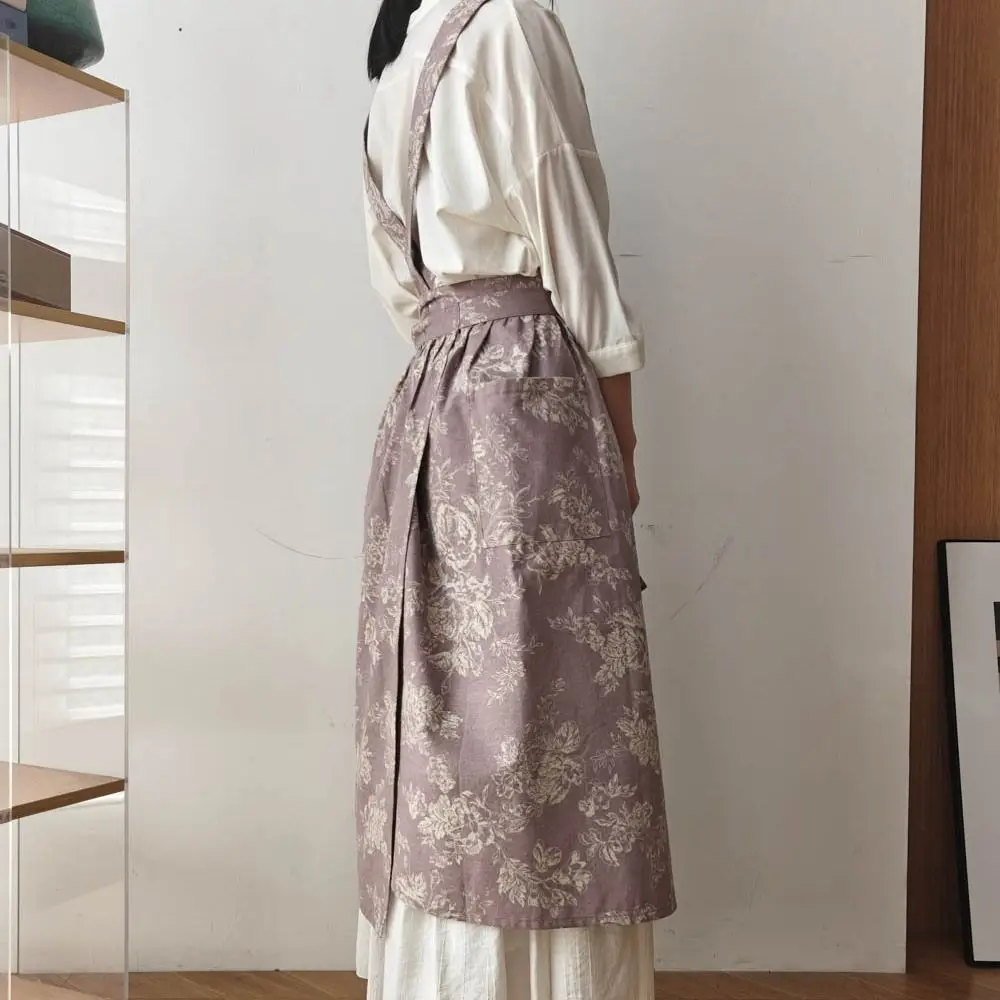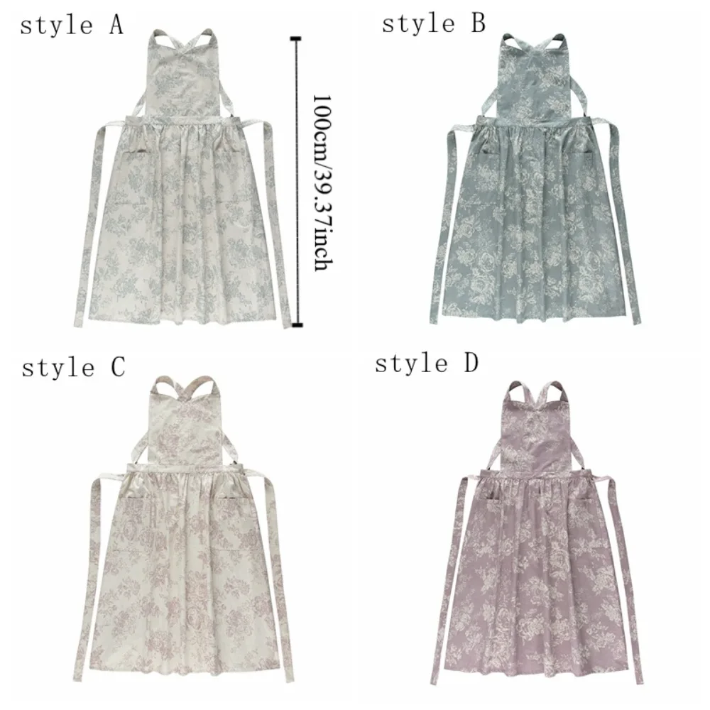 Portable Elegant Kitchen Apron with Pockets Exquisite Cleaning Apron Retro Soft Water-repellent Apron Kitchen