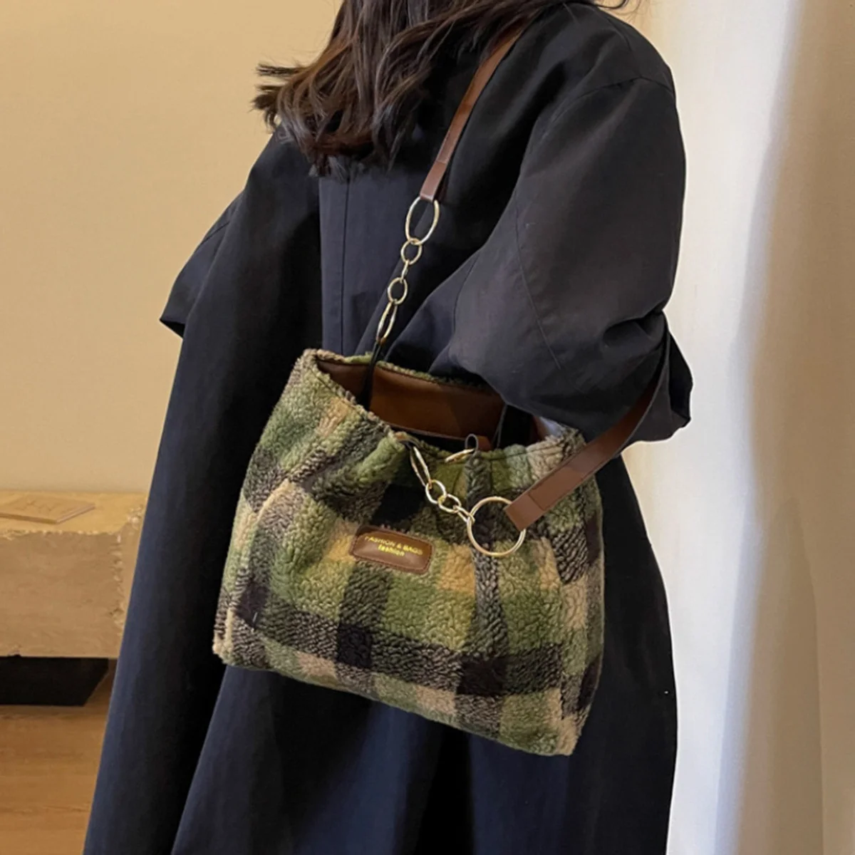 Elevate your autumn and winter outfits with our stunning Red Plaid Lambswool Shoulder Bag, designed for women who appreciate both style and practicality. This large capacity tote is perfect for carrying everything you need while making a fashion statement.