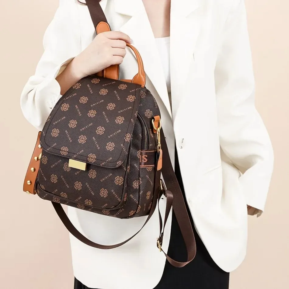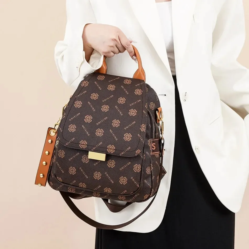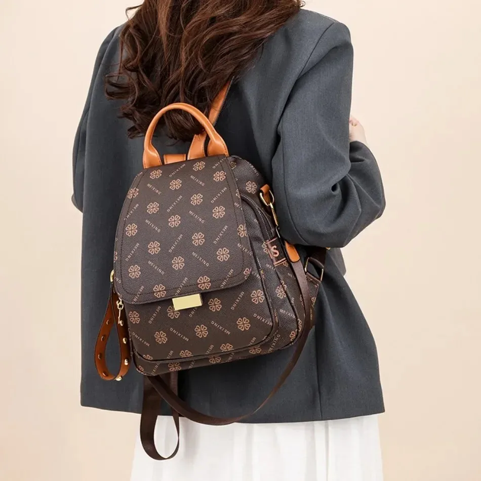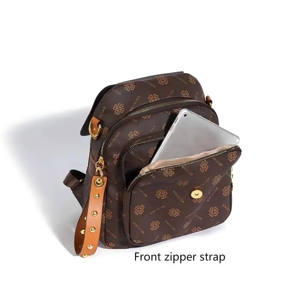 Retro printed large-capacity ladies' backpack elegant and simple style backpack casual anti-theft multi-functional single-should