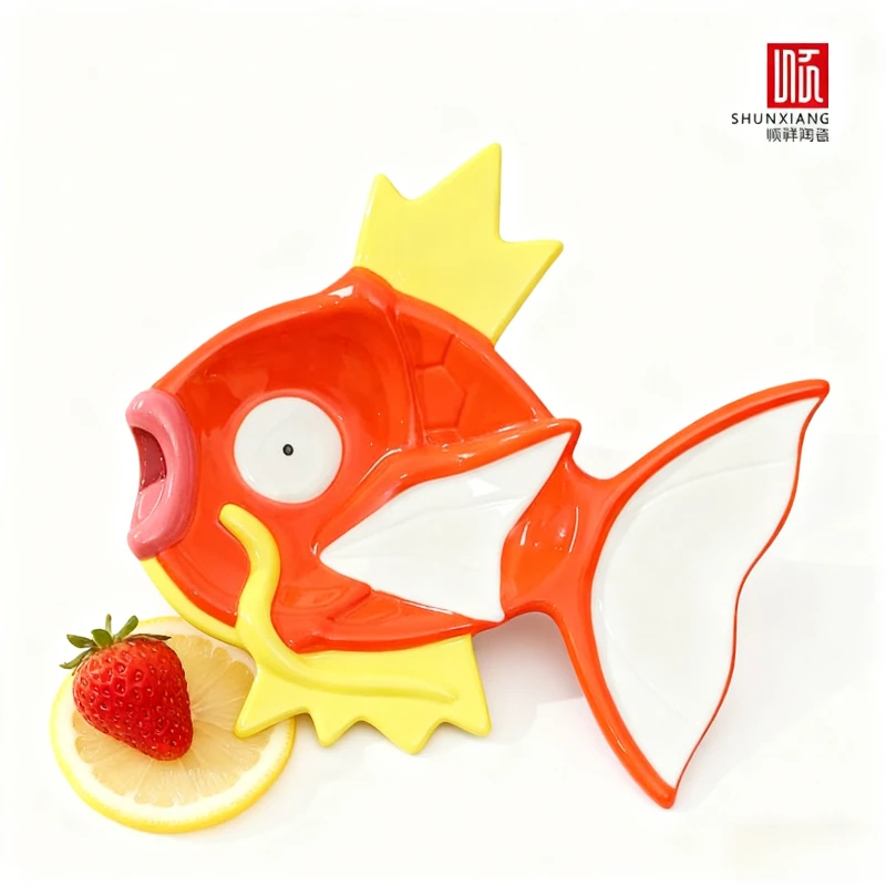 SHUNXIANG Pokémon Magikarp Ceramic Plate Fruit Pastry Tray Creative Fish Shaped Ceramic Sushi Sashimi Serving Plate Food Tray