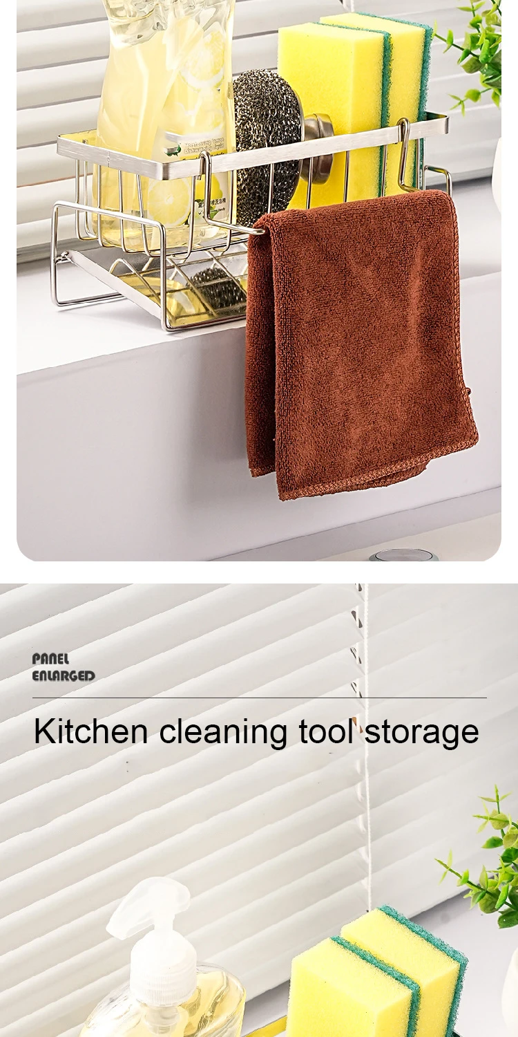 Sink Cleaning Tools Storage Rack Kitchen Multifunctional Stainless Steel Drain Rack for Sponge Cleanser Organizer Rag Hanger
