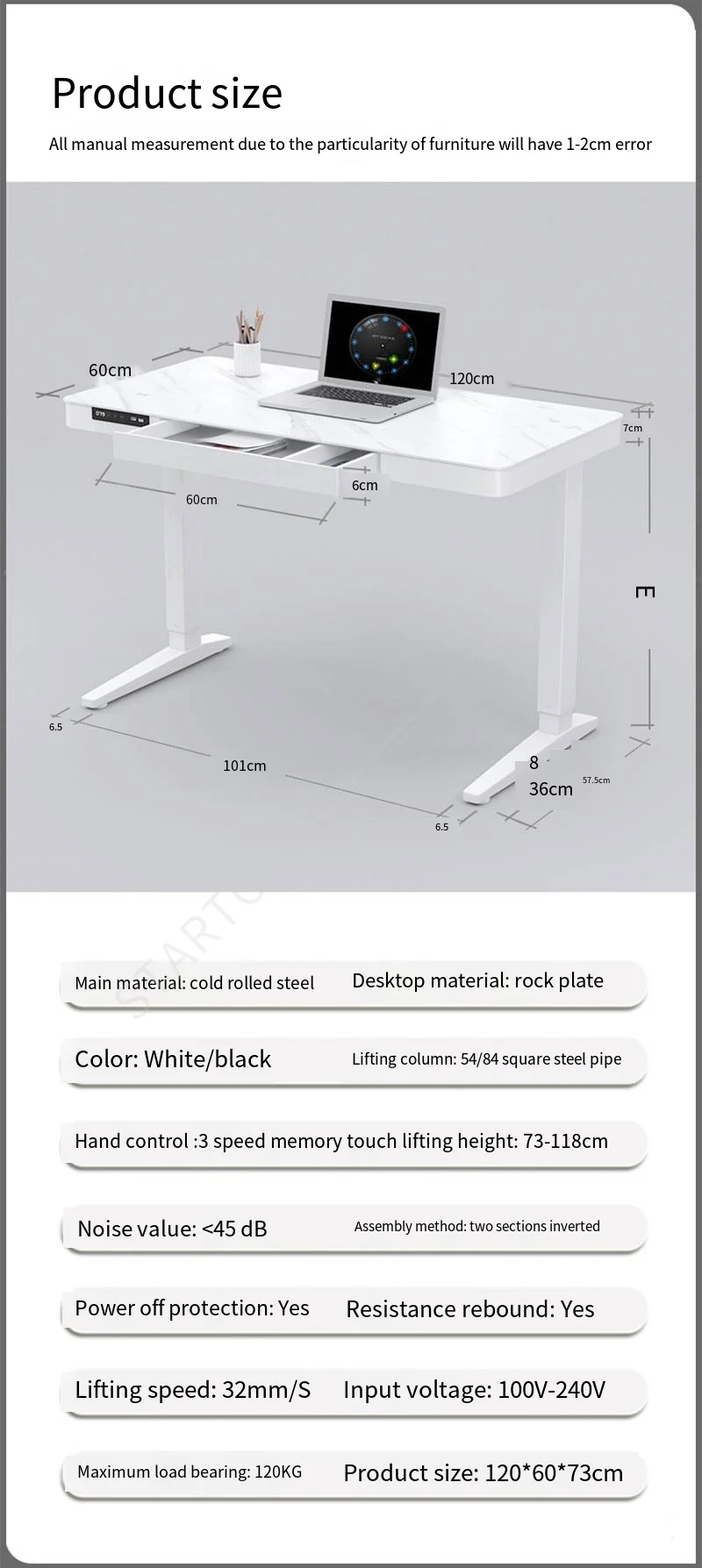- Electric Height Adjustment: Effortlessly elevate or lower the table to your desired height with a simple press of a button.