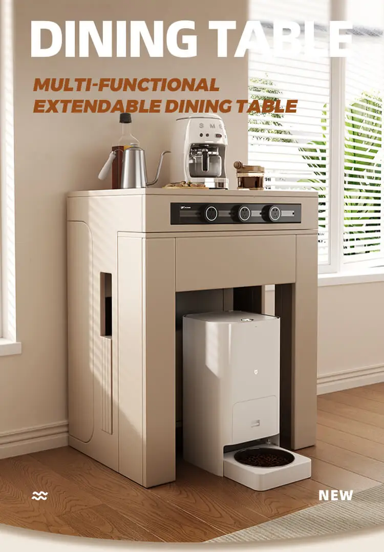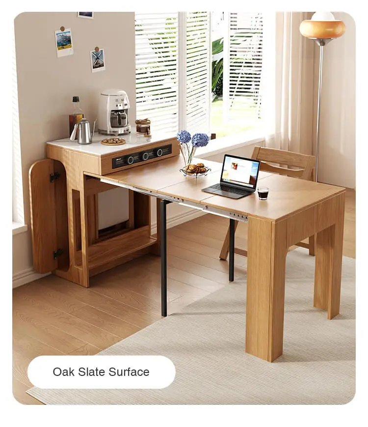 This is a space-saving retractable dining table designed for modern apartments, providing functionality and style in a compact design.