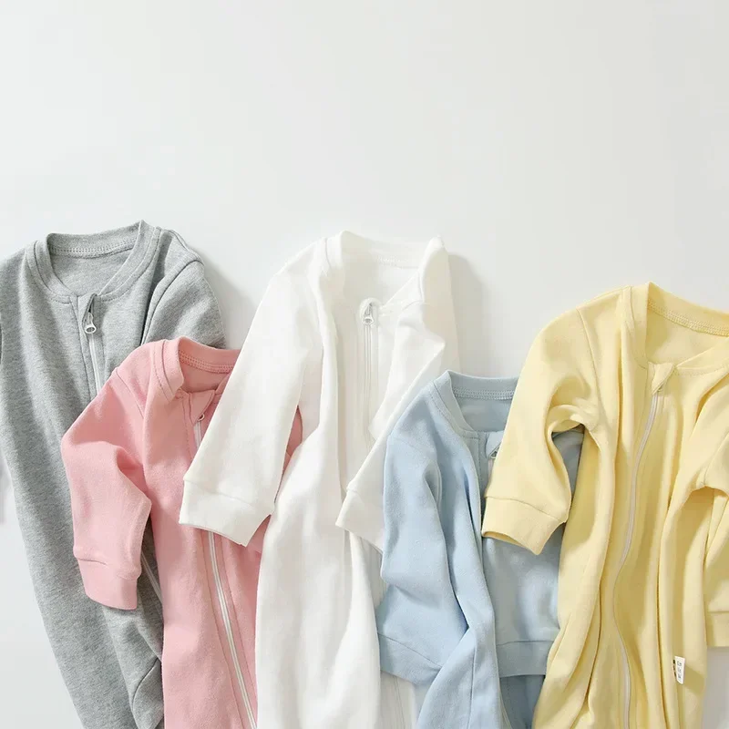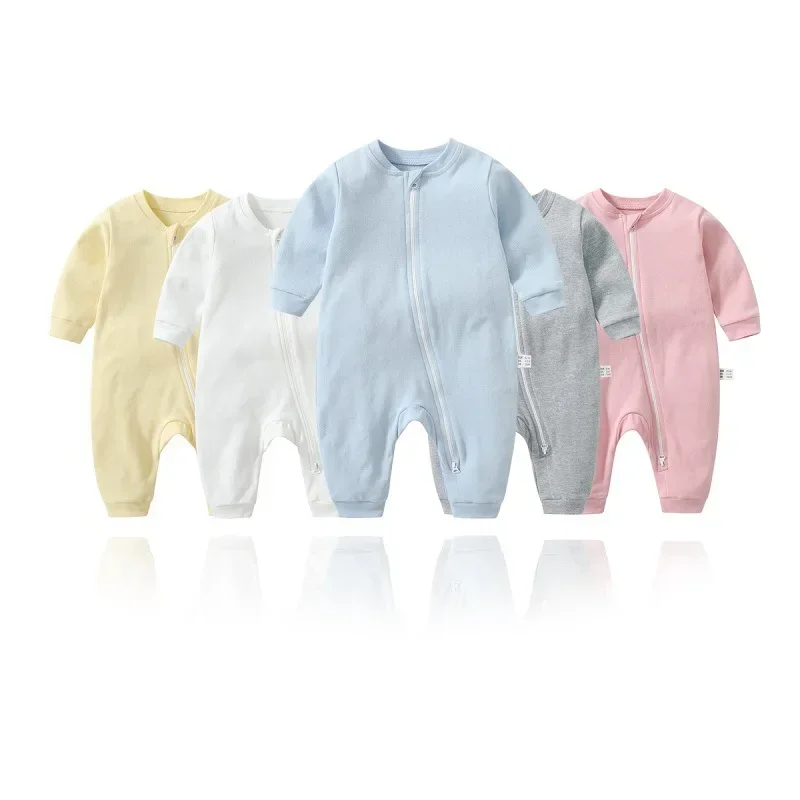 Spring Long Sleeve Solid Baby Boys Girls Rompers Cotton Jumpsuits Kids Clothes Climb Suits Zipper Nightclothes