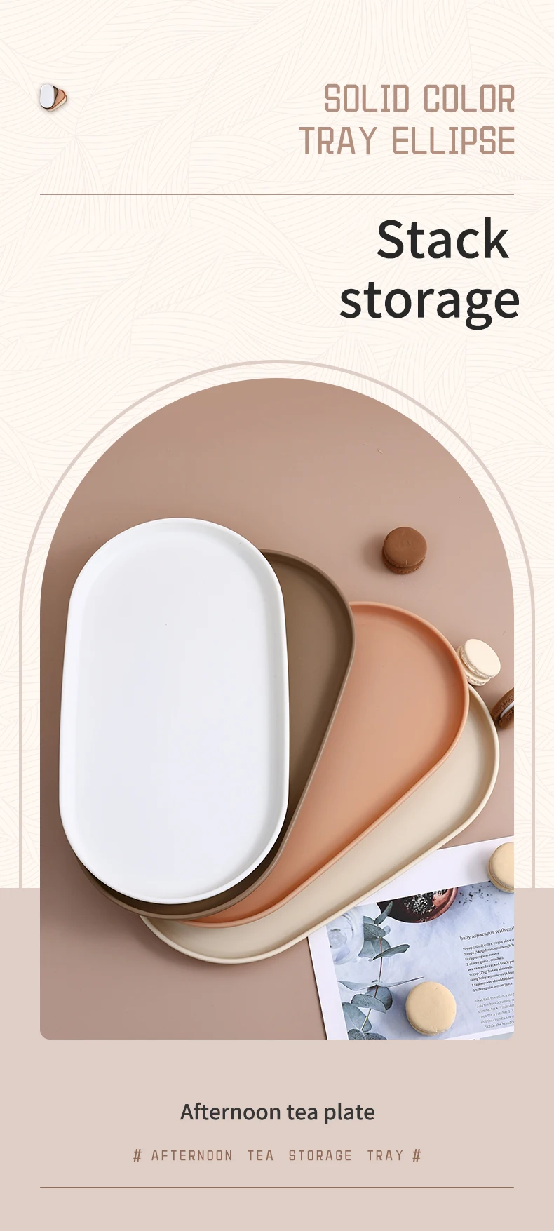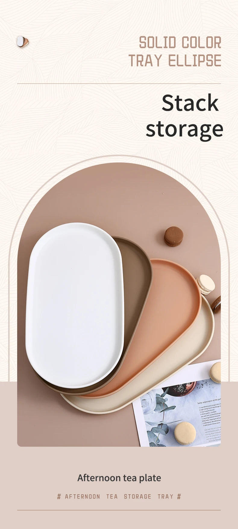 This product is a stackable oval food serving tray designed for serving fruits and desserts, combining style and practicality.