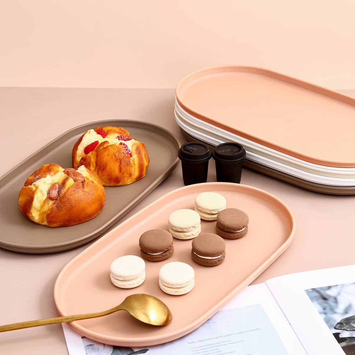 These plates are available in White, Khaki, Cream, and Coral Powder to match various décor styles.
