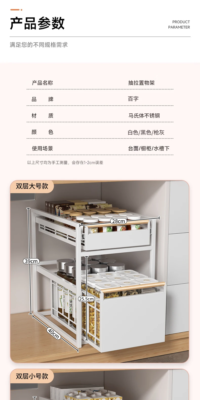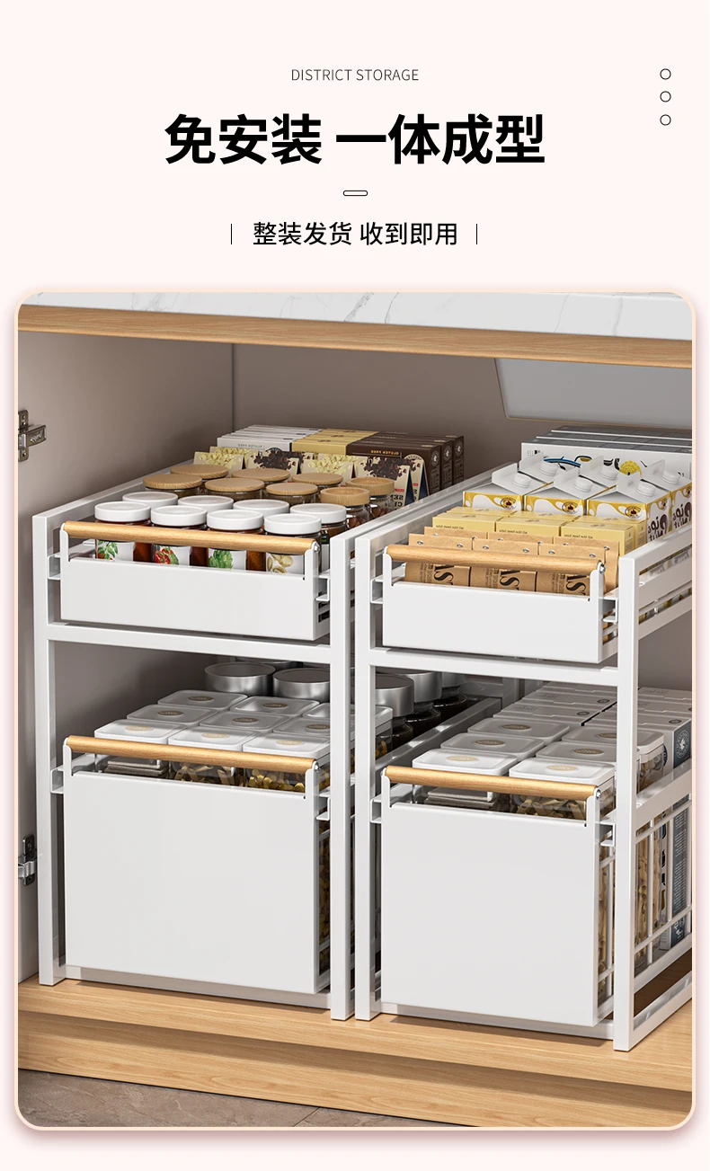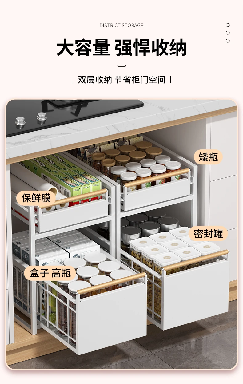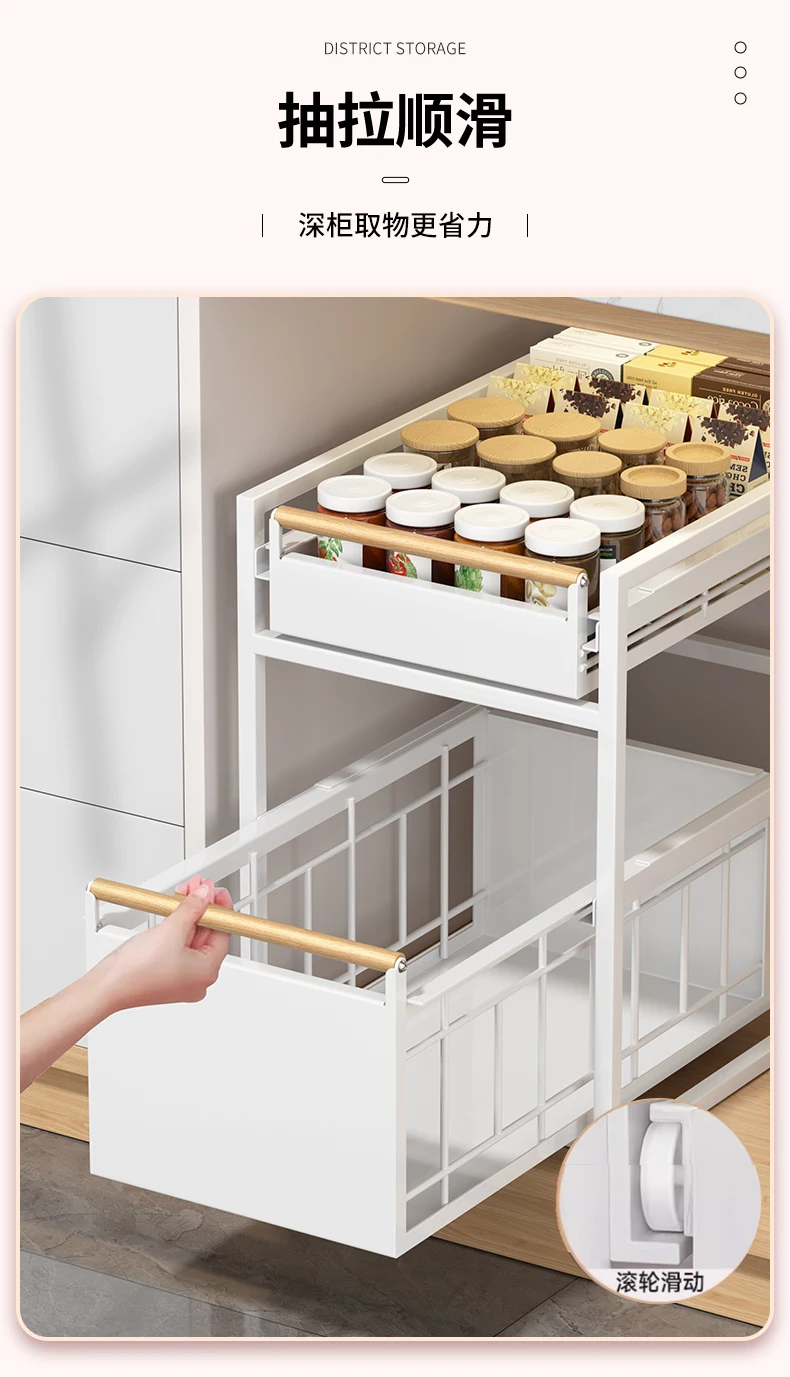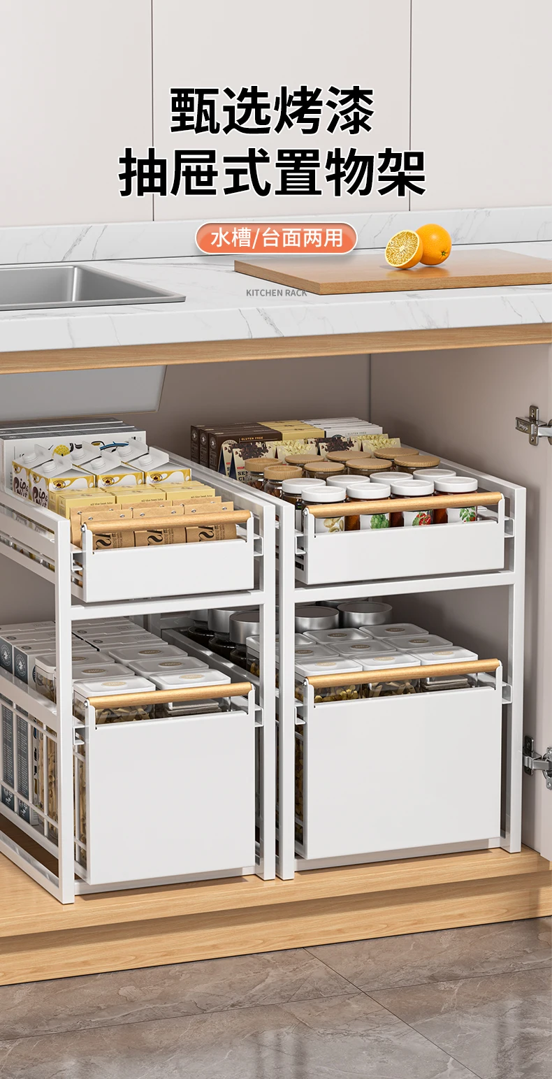 Stainless Steel Under-Sink Storage Rack Multi-Layer Pull-Out Organizer Kitchen Cabinet Basket Heavy-Duty Design
