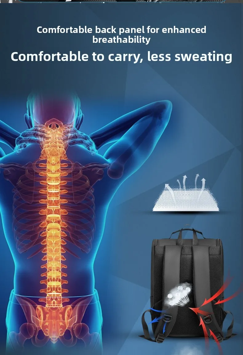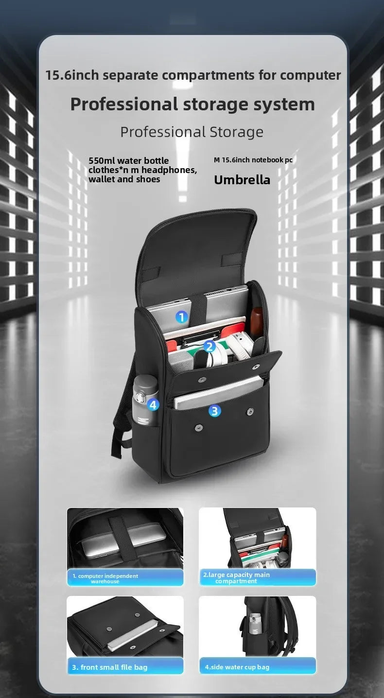 This is a fashionable unisex business backpack designed for students and professionals, accommodating laptops up to 15.6 inches.