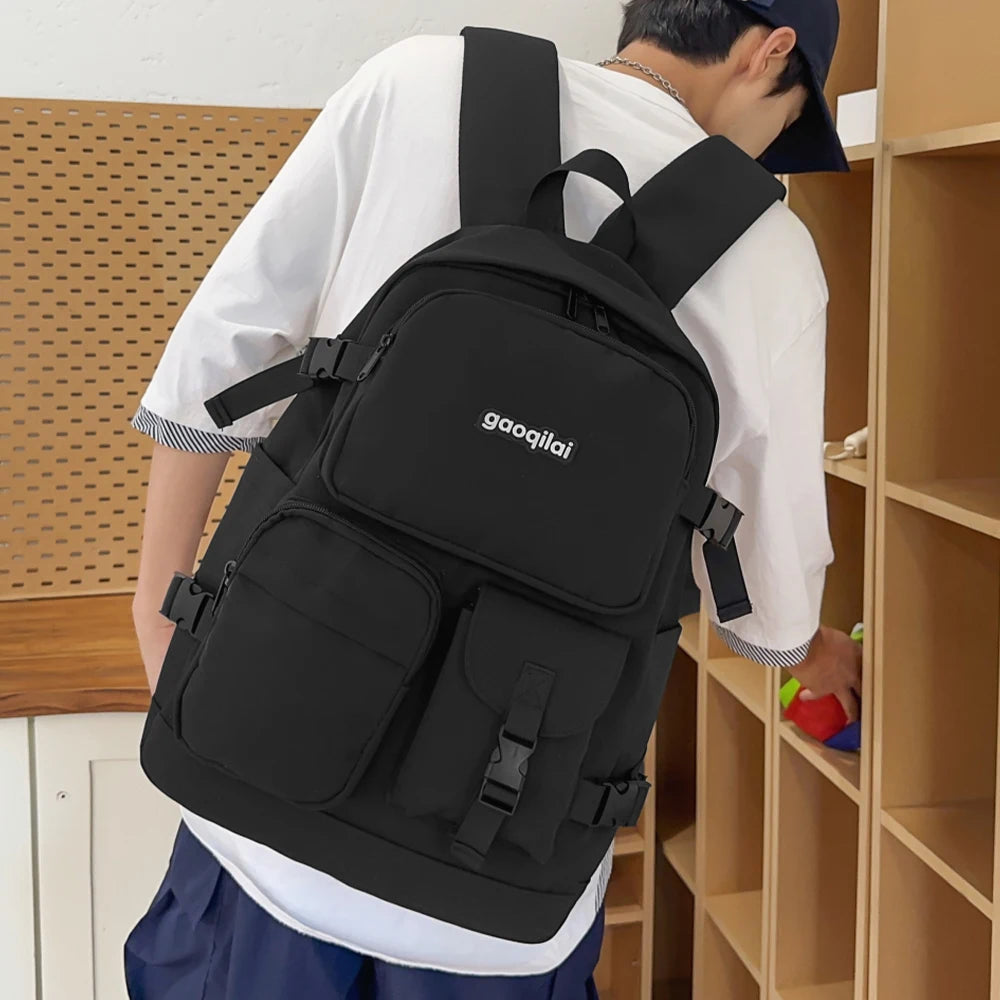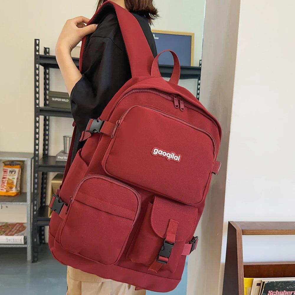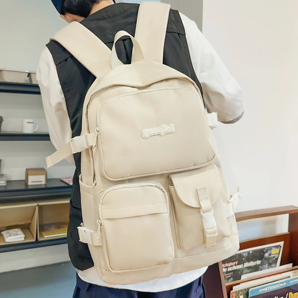 This is a fashionable and versatile solid color backpack designed for daily use, blending practicality with a sleek aesthetic.