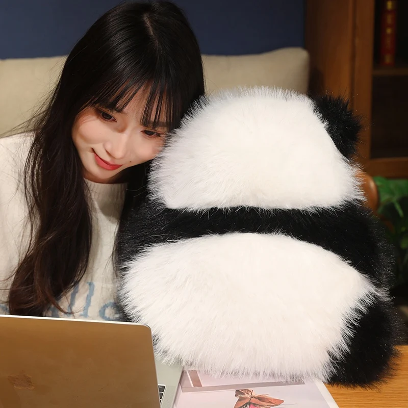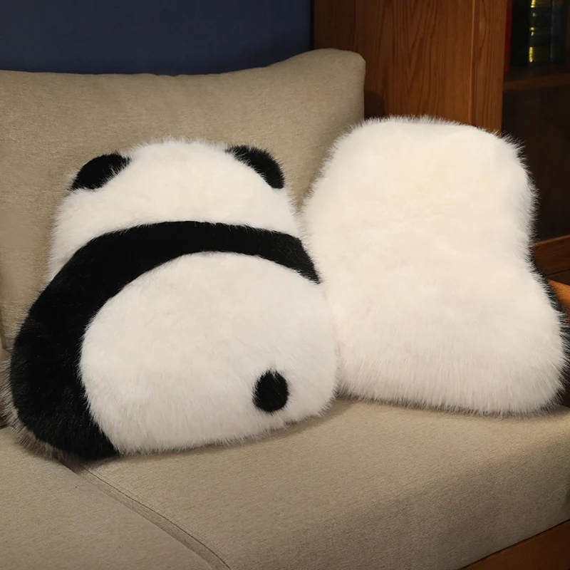 Super Fluffy Chocolate Panda Plush Cushion — Nordic Style Back-View Panda Hug Pillow, Soft Waist Support & Cute Sofa Decor