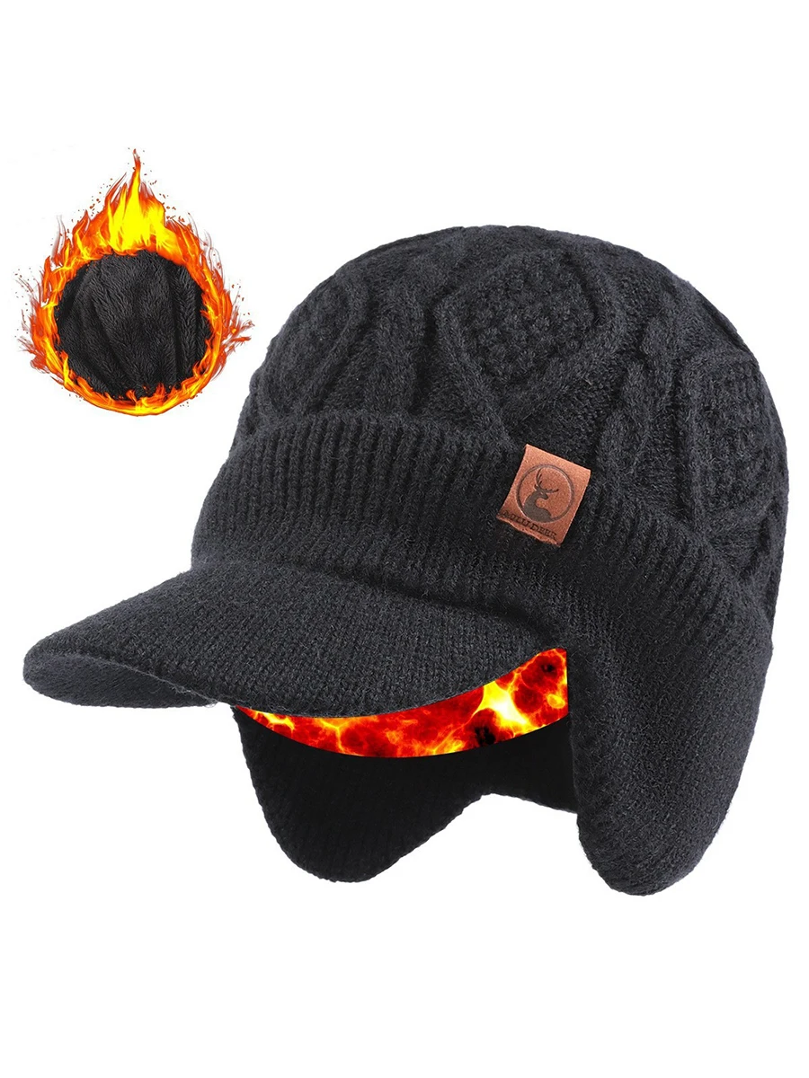 Cozy unisex thermal knit beanie with brim & ear flaps for winter 2026. Fleece lined acrylic, windproof warmth & multifunction design. Perfect skiing outdoor sports work cold weather hat!