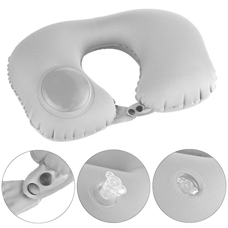 Push-Type Inflatable U-Shaped Neck Pillow — Portable Travel & Office Lunch Break Pillow with Built-In Air Pump