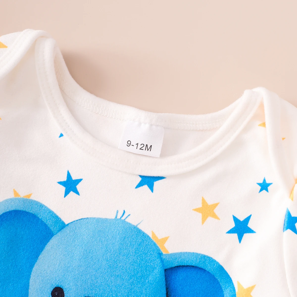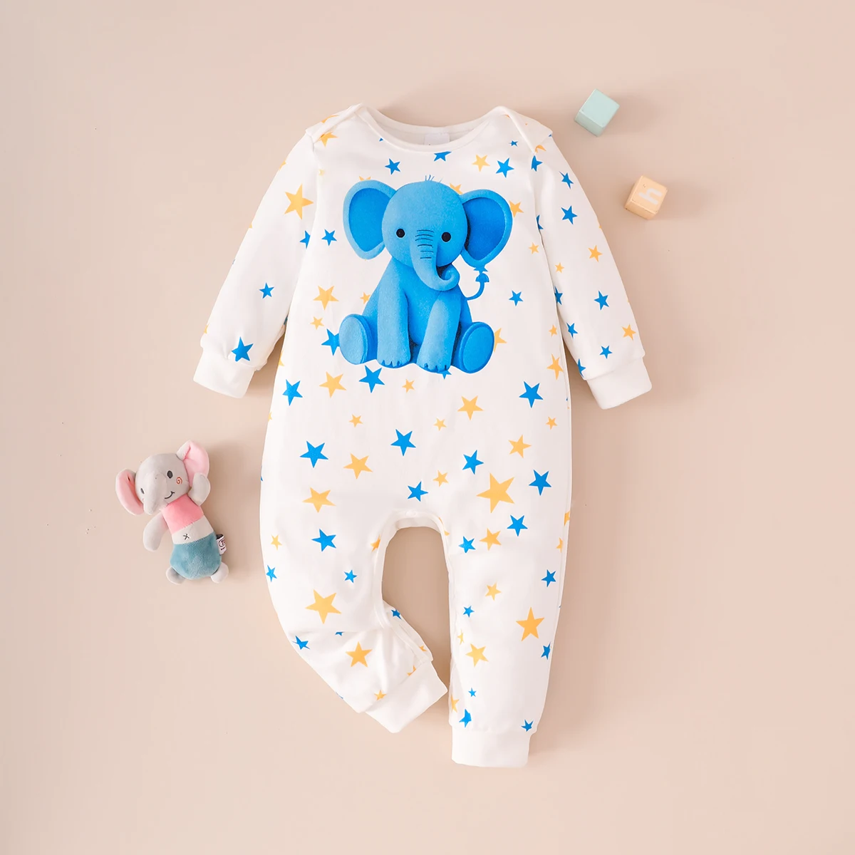 Unisex Baby Romper Spring Autumn Long Sleeve Elephant Print Casual Onesie for Boys And Girls