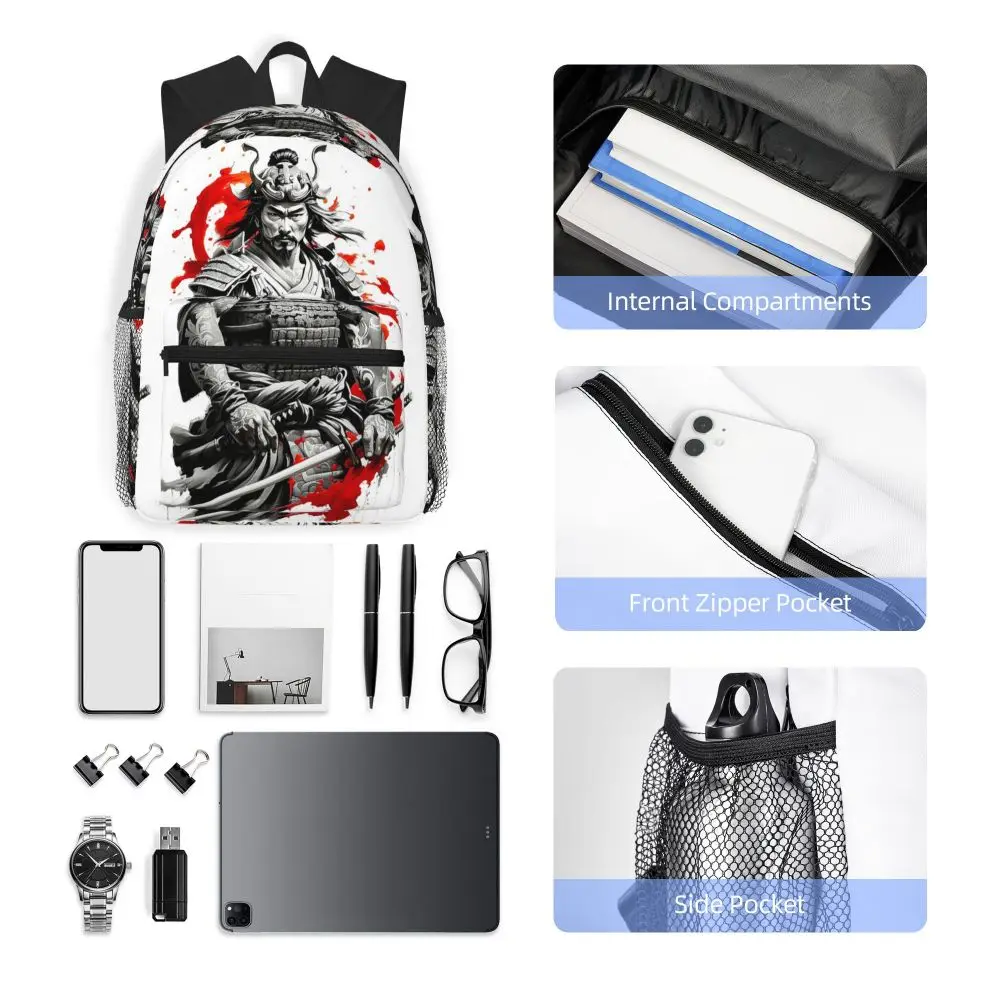 This product is a versatile unisex backpack designed for students and outdoor enthusiasts, featuring a unique samurai warrior design.