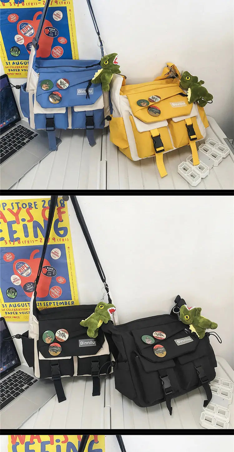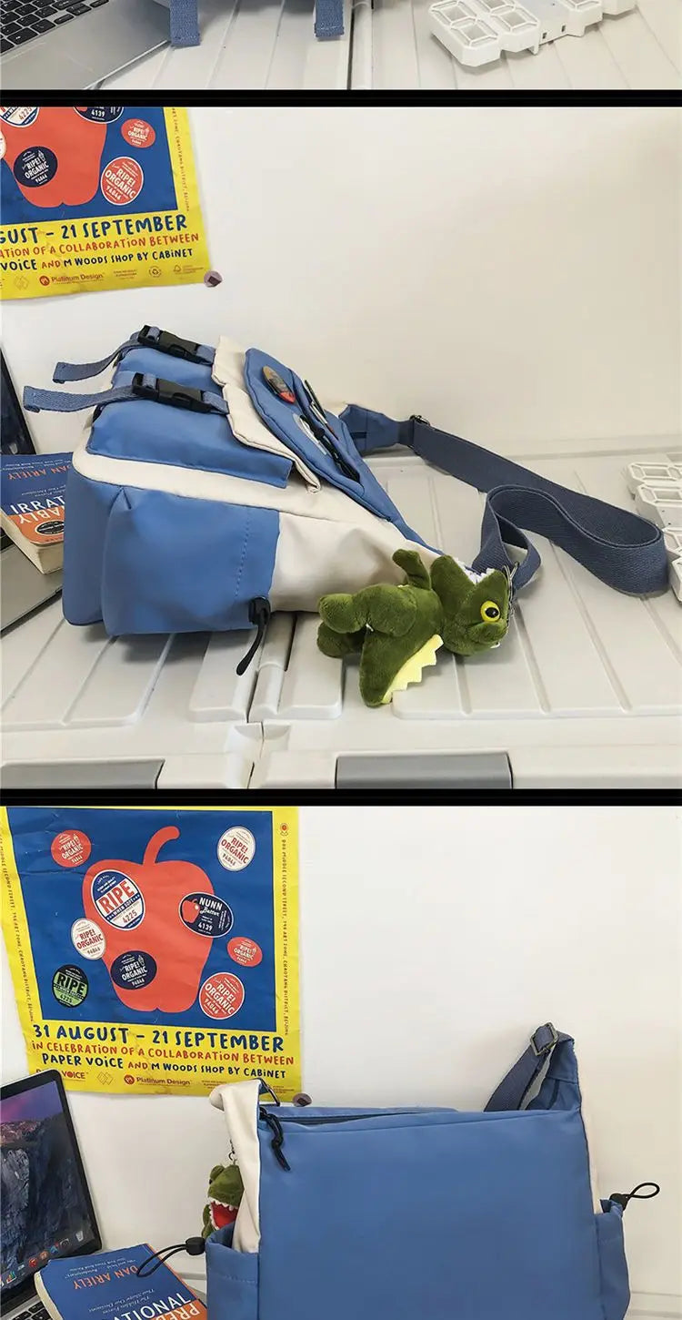 This is a waterproof nylon messenger bag designed for students and everyday use, combining style and functionality.