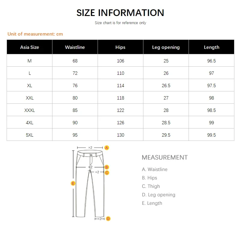 3. Elastic waist design, with flexibility, and the measured data filled in is only an appropriate threshold.