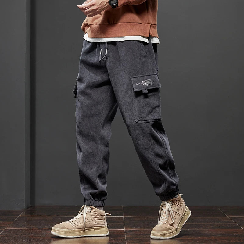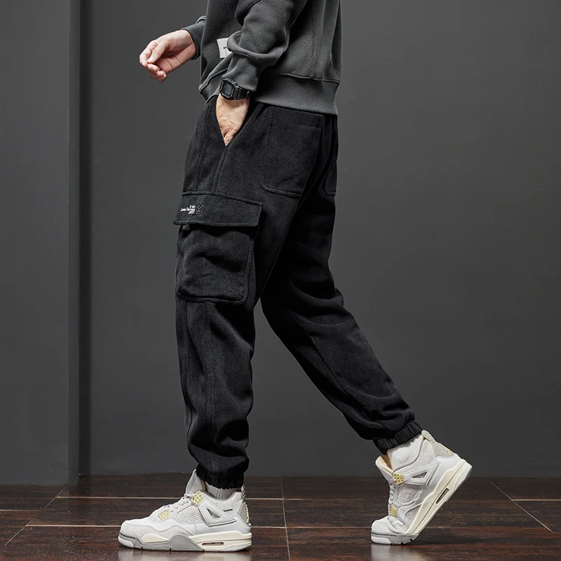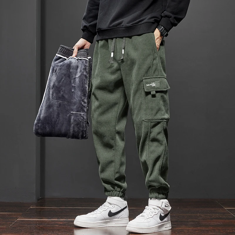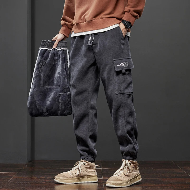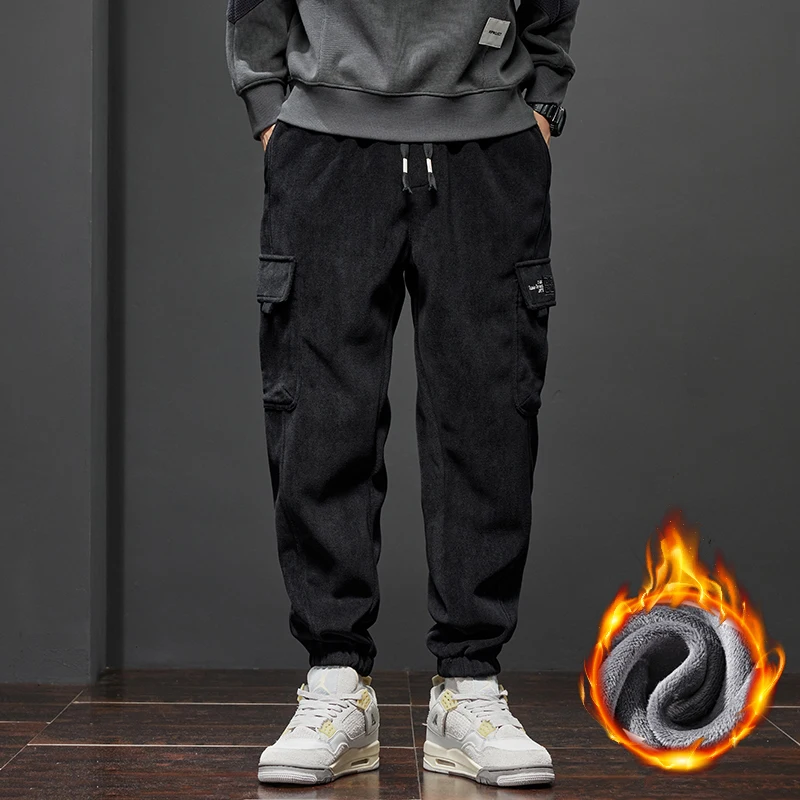 Winter Fleece Warm Men’s Corduroy Jogger Pants Thick Loose Cargo Harem Trousers Velvet Plush Casual Sweatpants