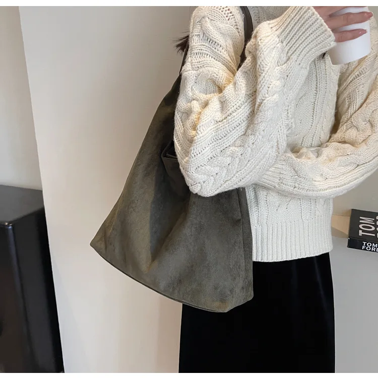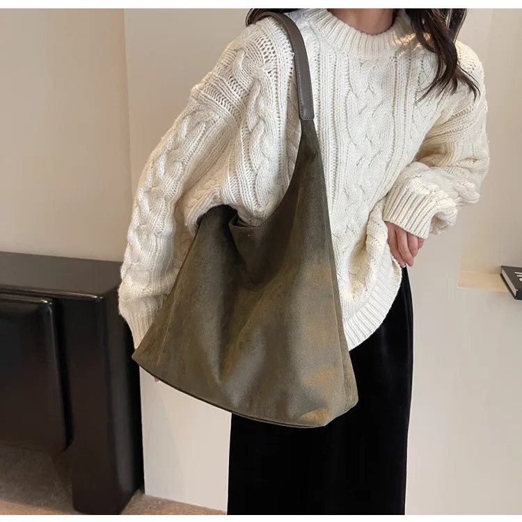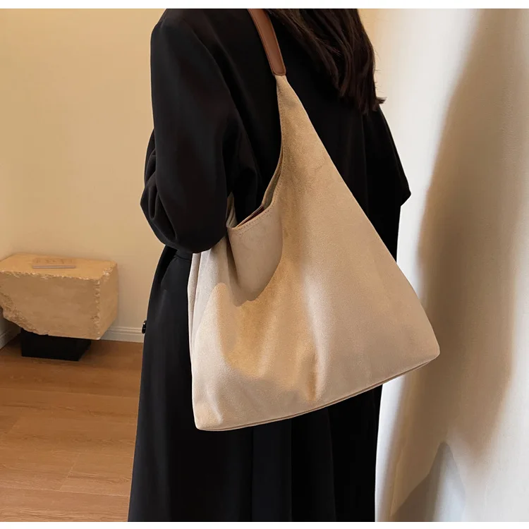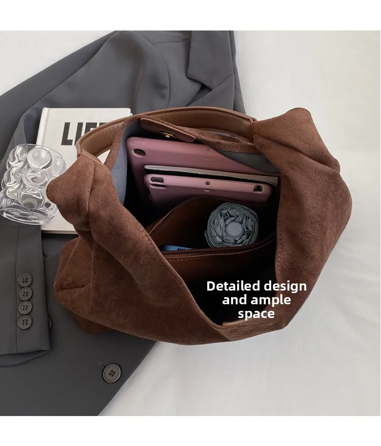 This is a large capacity winter crossbody shoulder bag made from textured suede, combining style and practicality for any occasion.