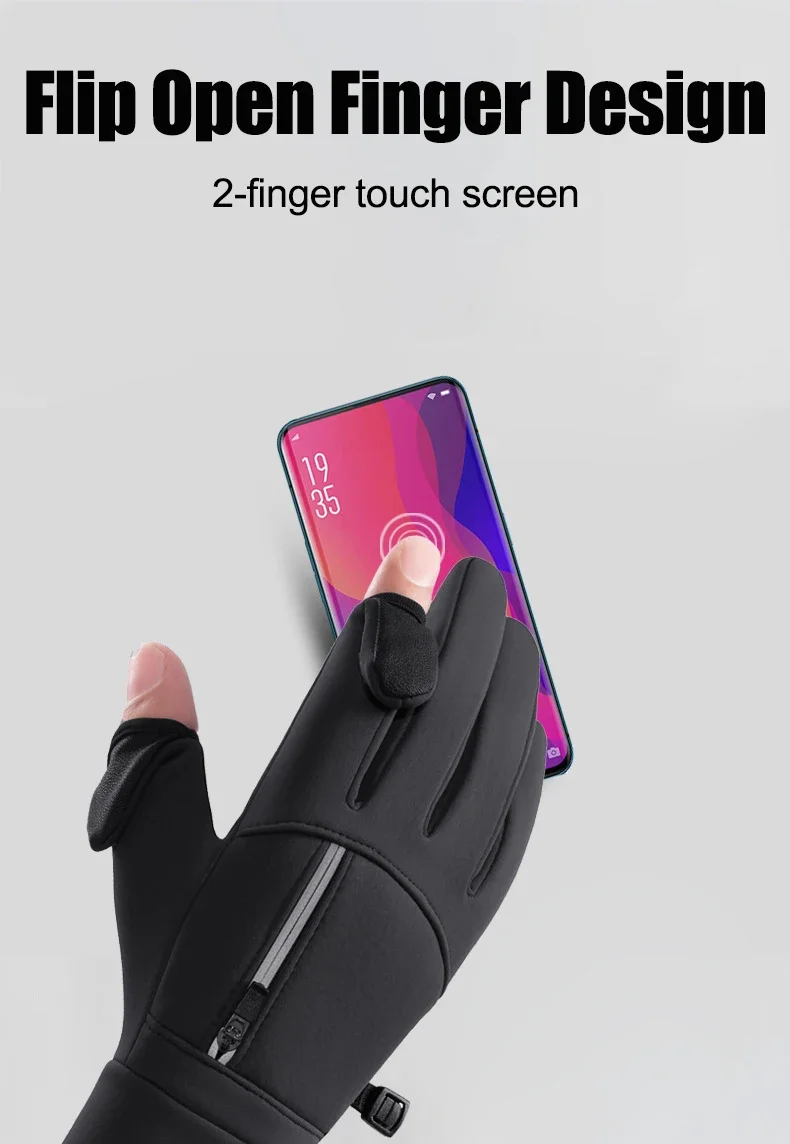 Stay warm and functional outdoors with these winter waterproof touch-screen gloves featuring a practical flip-open two-finger design. The convertible finger cover allows you to expose your thumb and index finger instantly — perfect for operating a phone, tying fishing lines, handling tools, or adjusting gear in cold weather.