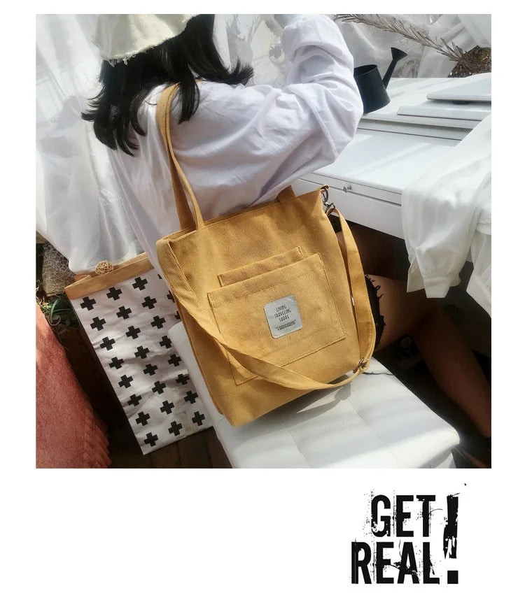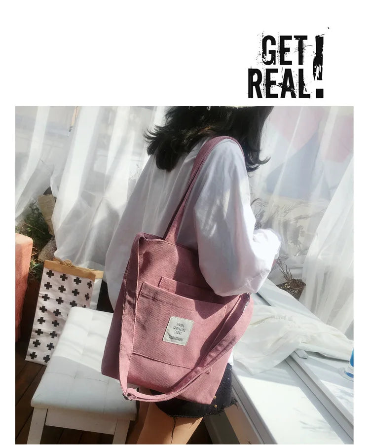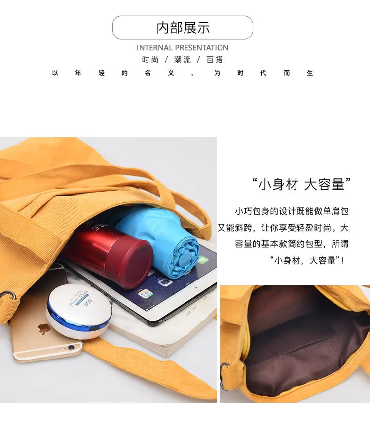 This is a stylish canvas shoulder bag made from soft corduroy, perfect for everyday use and casual outings.