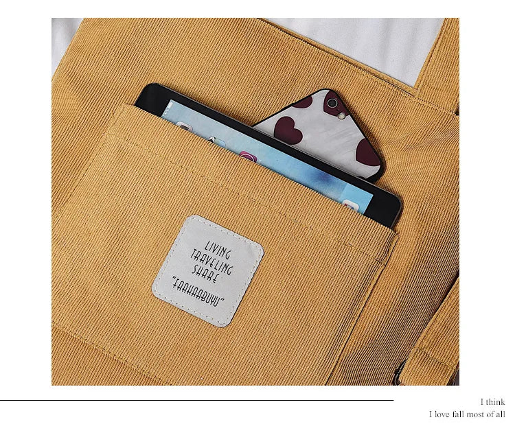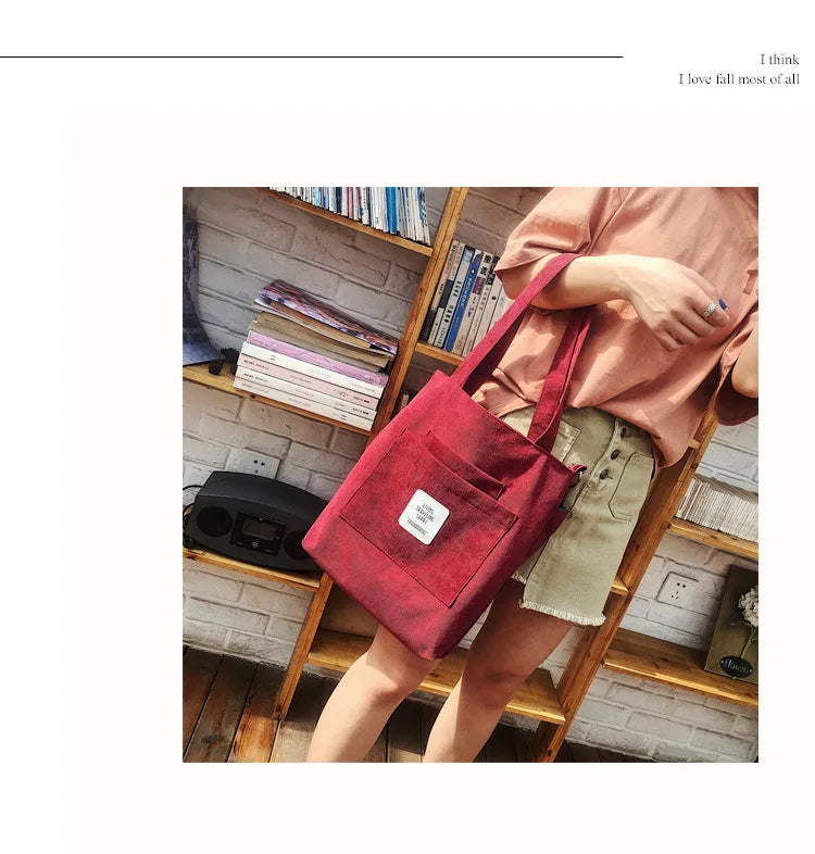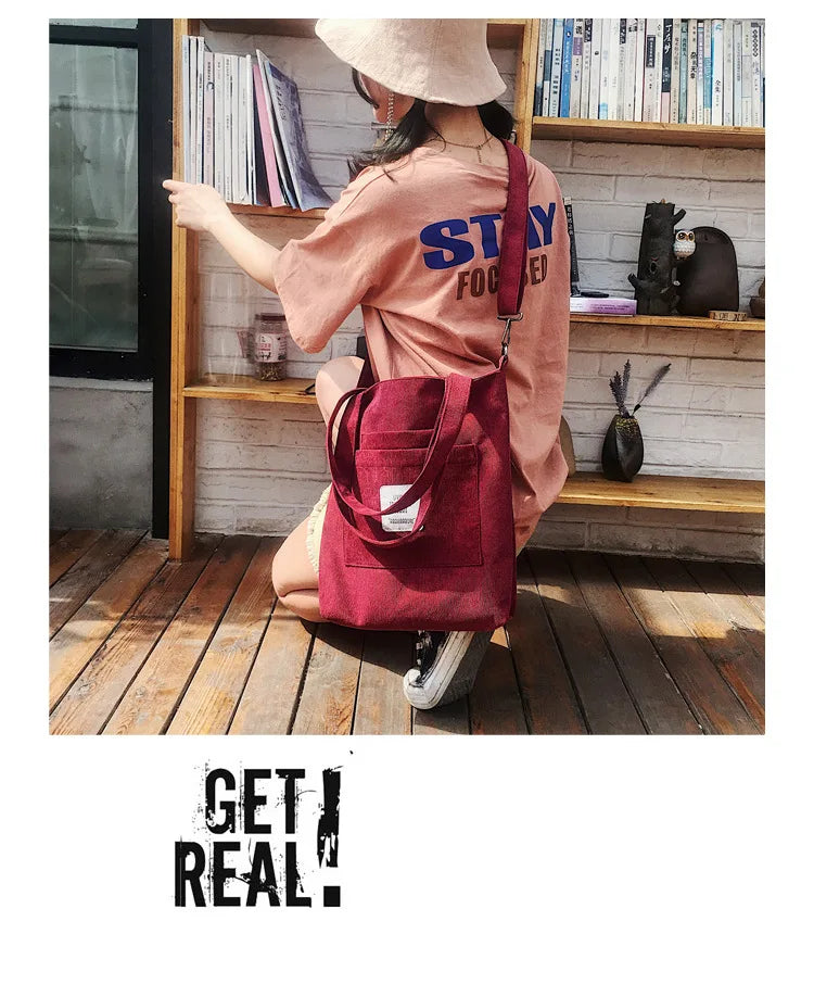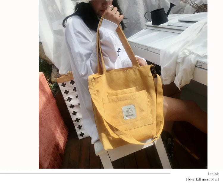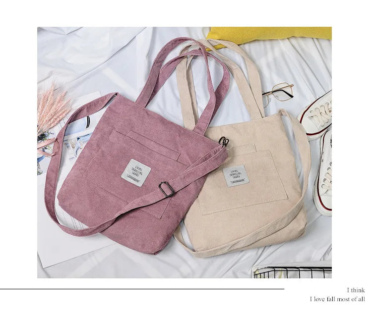 Casual Women’s Canvas Shoulder Bag | Soft Corduroy Tote Purse