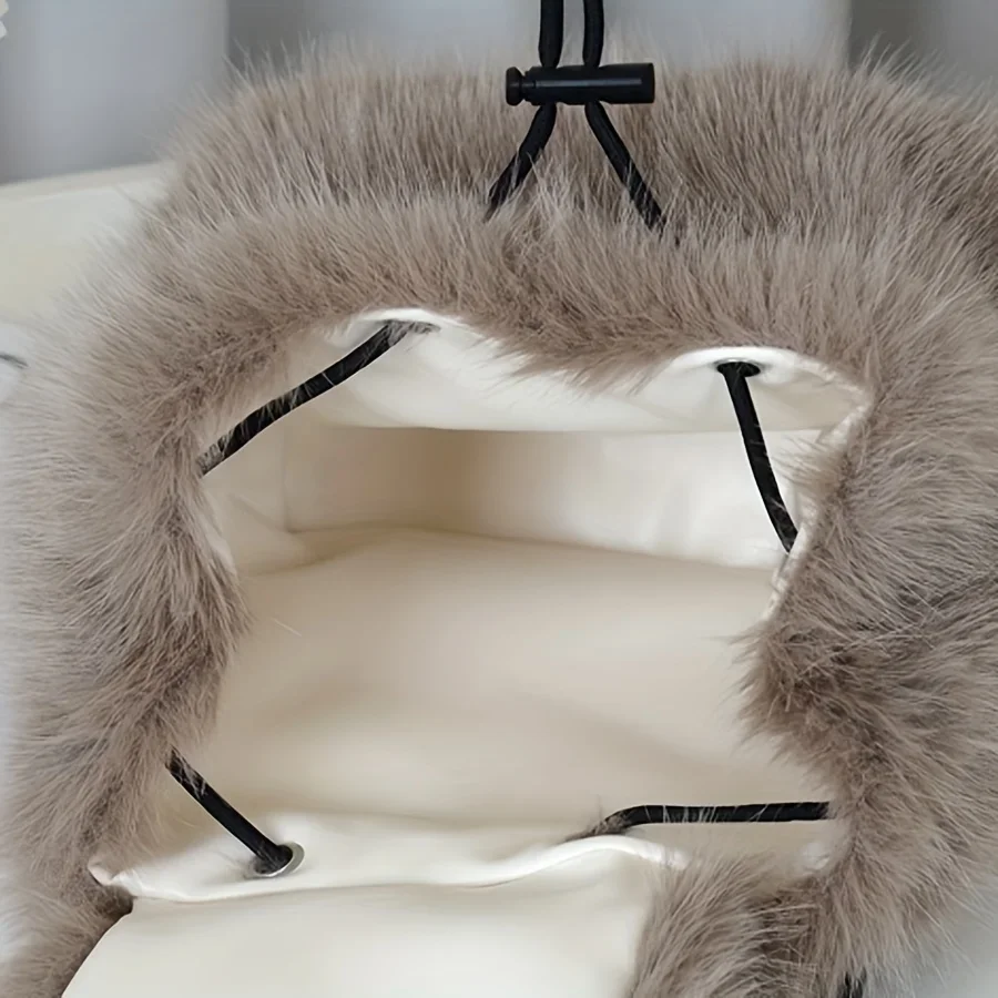 Women's Plush Faux Fur Backpack with Adjustable Drawstring Closure Daypack for Casual Formal Use Mini Backpack Soft Texture Bag