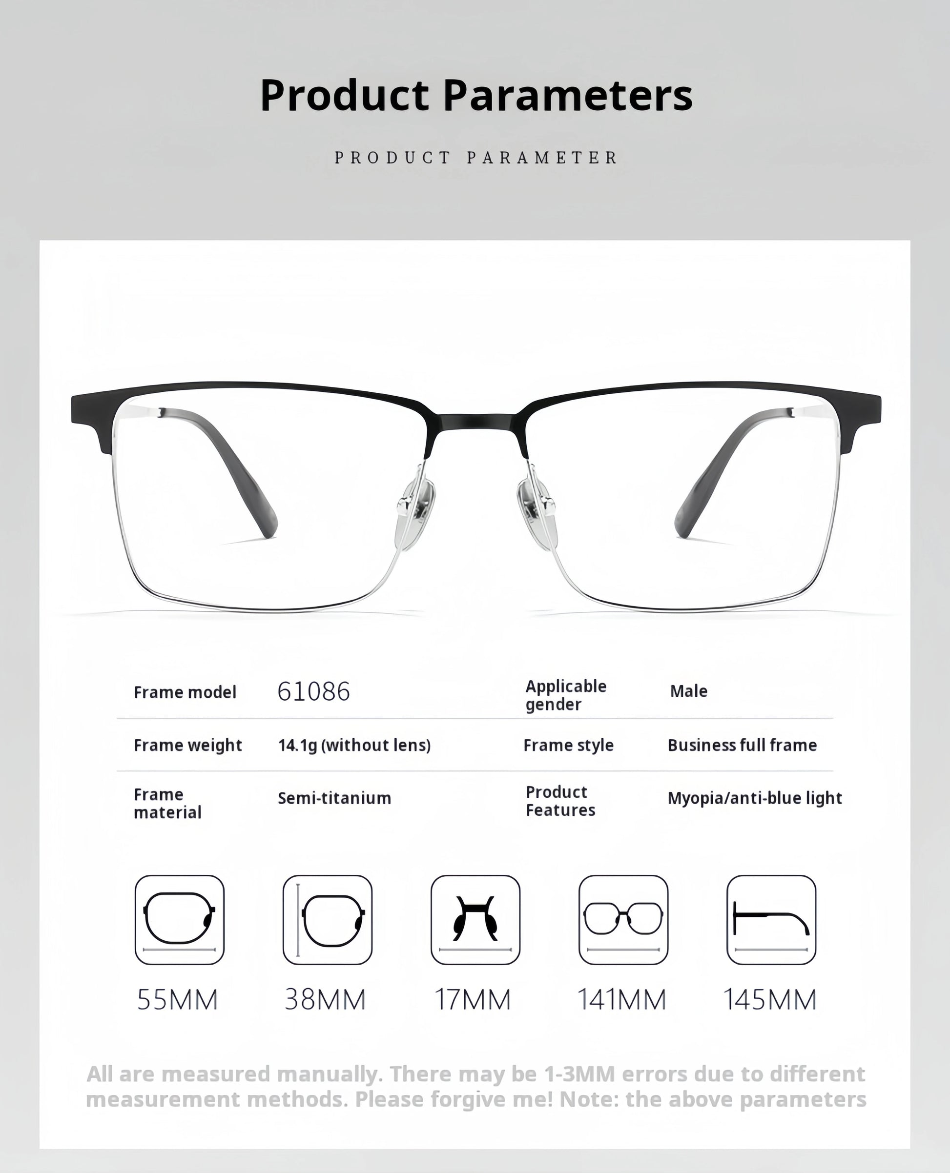 Step into a world of clear vision and refined style with our premium Men's Prescription Glasses. Designed to provide exceptional vision correction for both myopia and hyperopia, these glasses are the perfect blend of functionality and fashion.